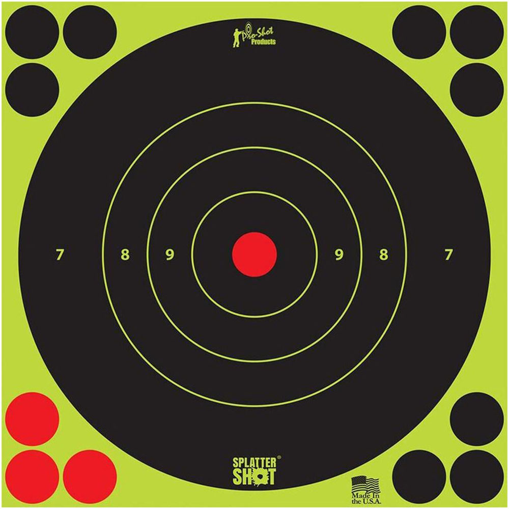 Shoot, splat and see. Pro-shot splatter targets make it easy to see your shots at a distance. The bright color bullet holes are visible in all light conditions without the aid of binoculars or spotting scopes, covering both short and long ranges. What makes them more reliable is their self-adhesive back that will allow you to place the target with ease. The included repair pasters will also maximize the life of your targets so you can re-use them more than once before discarding them.
