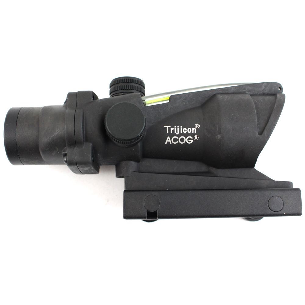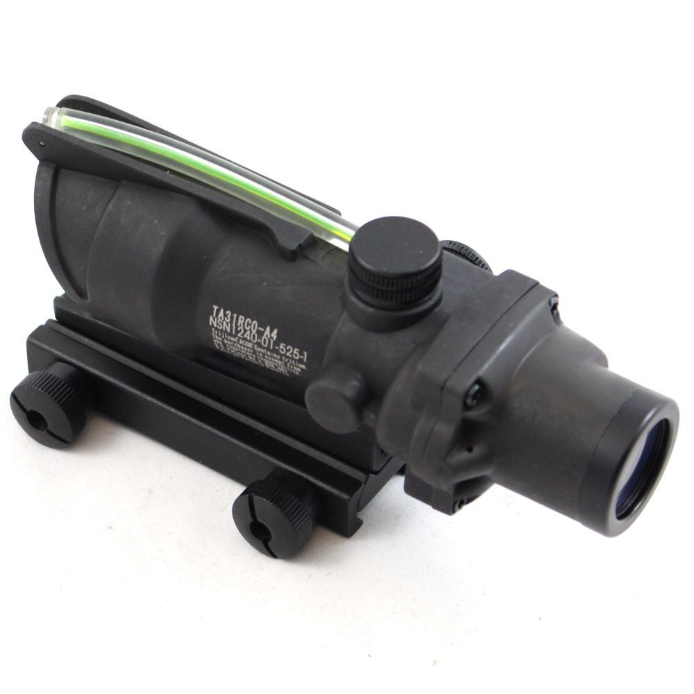 Comments: Equip your AR-15 with the ACOG Green Dot Scope for improved target accuracy. It magnifies up to 4x with an objective lens diameter of 32mm. The scope is set for .223 calibre rifles and can see up to a range of 800 m. A dual illuminated reticle allows you to get equal aim for both daytime and nighttime firing.