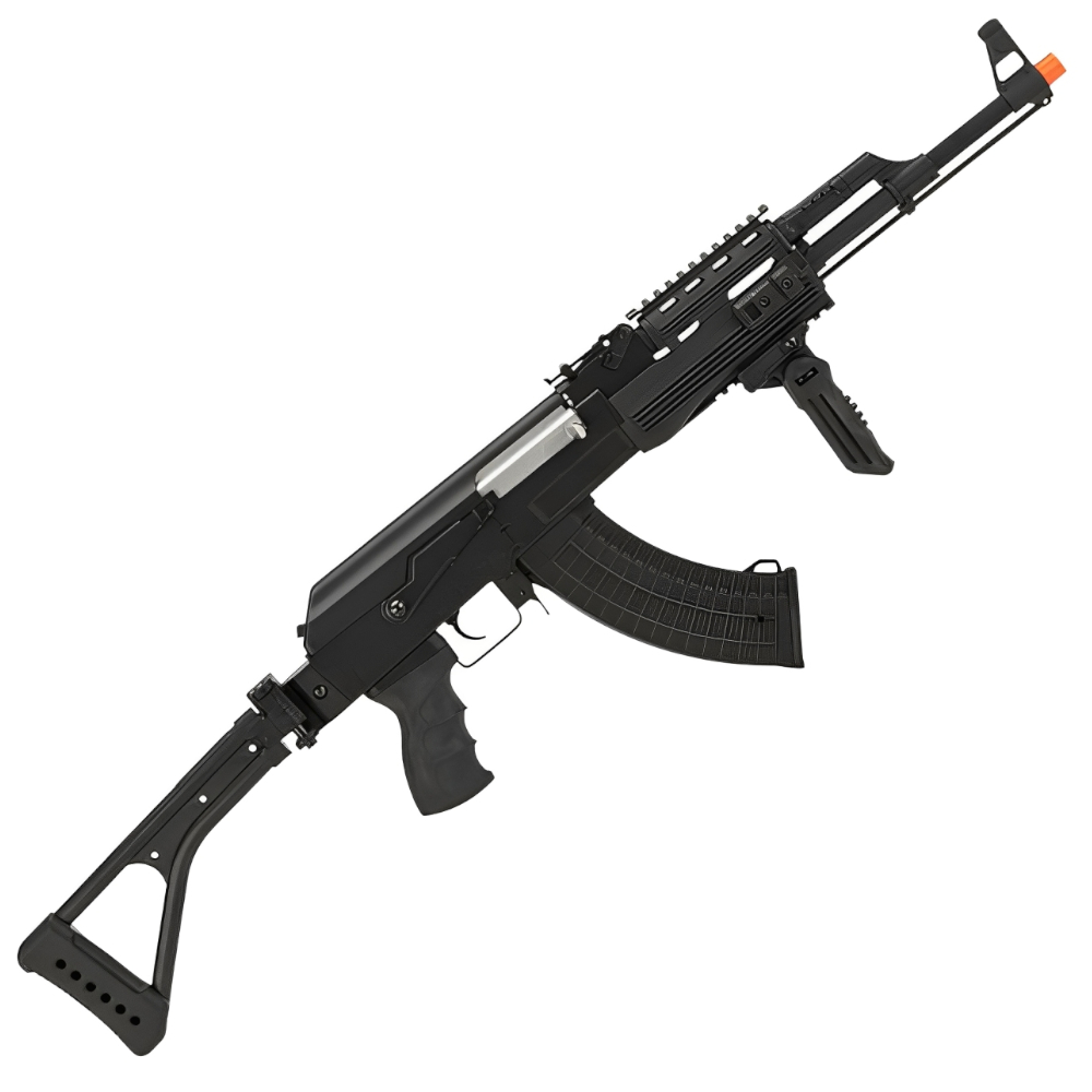 Realism: The Cybergun Kalashnikov AK47 Tactical Folding Stock AEG Airsoft Rifle for sure looks the part of a more modern tactical AK47 with the majority of the mechanical parts functioning like a real steel version as in the charging bolt, bolt cover, sector switch, foldable rear stock and of course the magazine release.