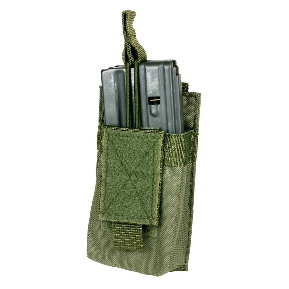 The NcSTAR Vism Single Mag Pouch (Black) provides soldiers with the perfect way to carry extra ammo with them into the field. This mag case is made with adjustable bungee-style retention straps that make access to your mag easy while securely holding them in place. The Vism magazine single ammo carrying holster will hold virtually any 5.56/223, or 7.62 x 39 double stack magazine, so you will never be without the ammo you need to survive any situation. This case is made with PALS straps for attaching to a vest, tactical backpack or compatible Vism rifle case. Constructed using a heavy duty PVC material, the pouch is guaranteed to be incredibly durable and long lasting.
