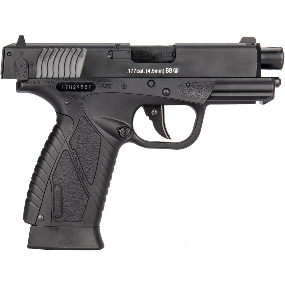 Realism: The ASG Bersa BP9CC BB gun is an impressively accurate representation of the actual firearm, down to licensed Bersa trademarks and the 9x19 caliber markings. The only notable difference is the slightly extended magazine butt-plate, likely for accommodating the CO2 screw tab. Its appearance is strikingly similar to the real firearm.