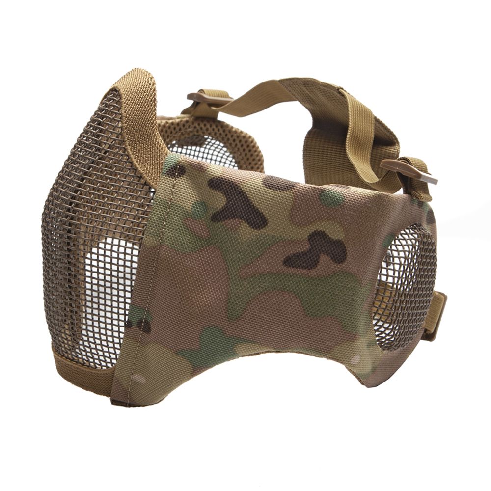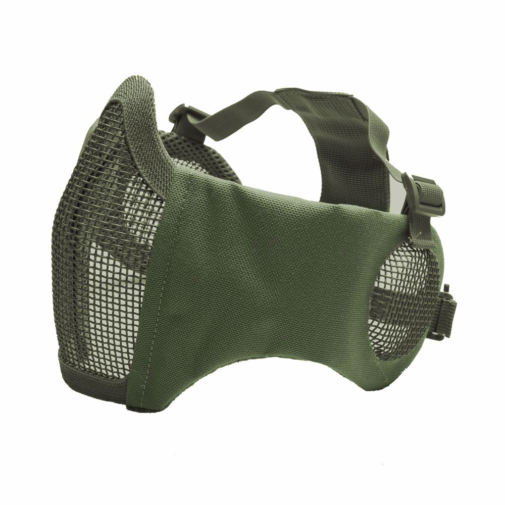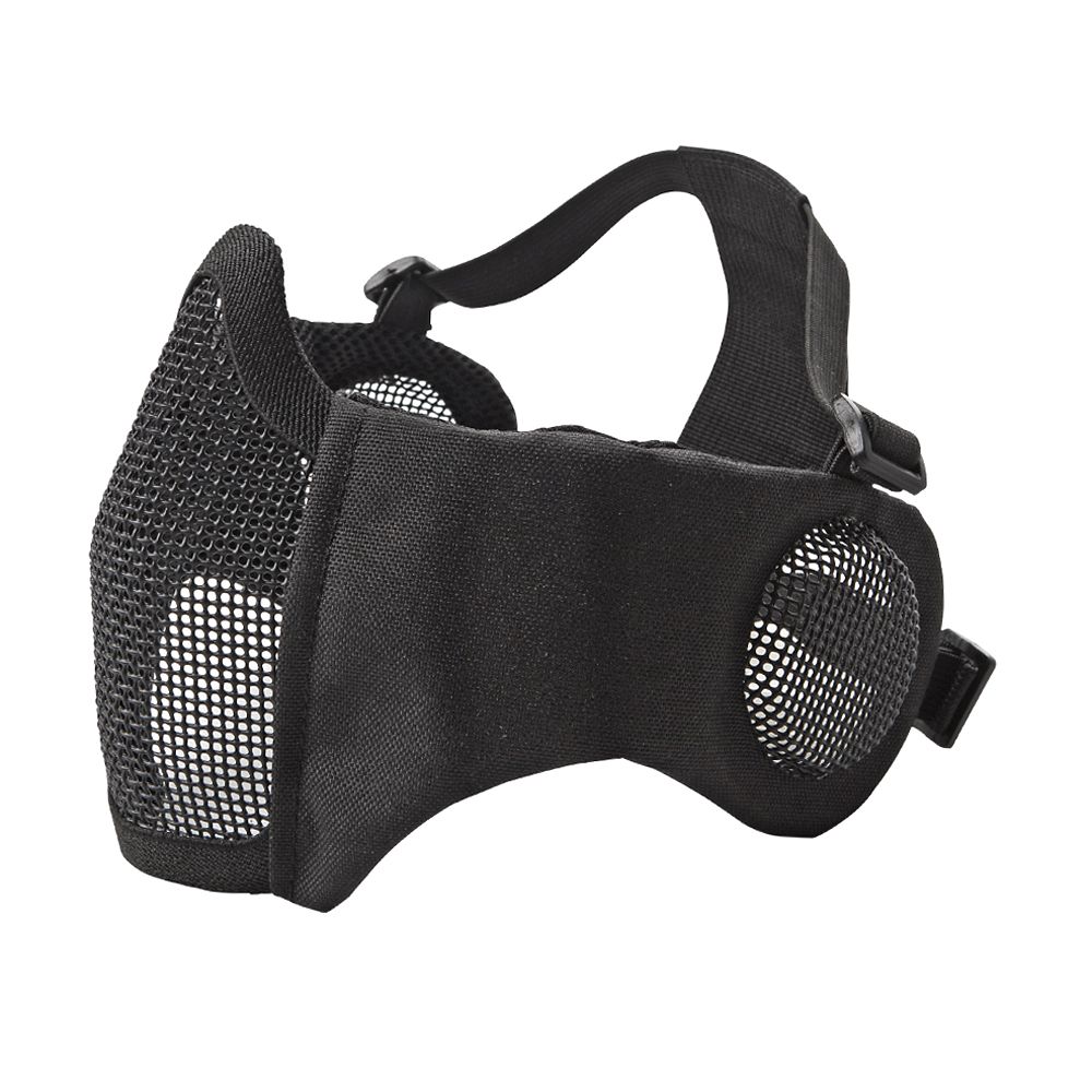 The mask still offers superior comfort and protection. This combo nylon/metal grid mask covers the lower face, features fully adjustable upper, and lower elastic straps as well as rear retention webbing insert, which keeps the straps in place on the head. The soft padded nylon sides of the mask follows the contours of the face and allows easy shouldering of any rifle, so the mask does not get in the way of a clear sight picture. The metal mesh can be adjusted for a perfect fit. Must be used with safety goggles.