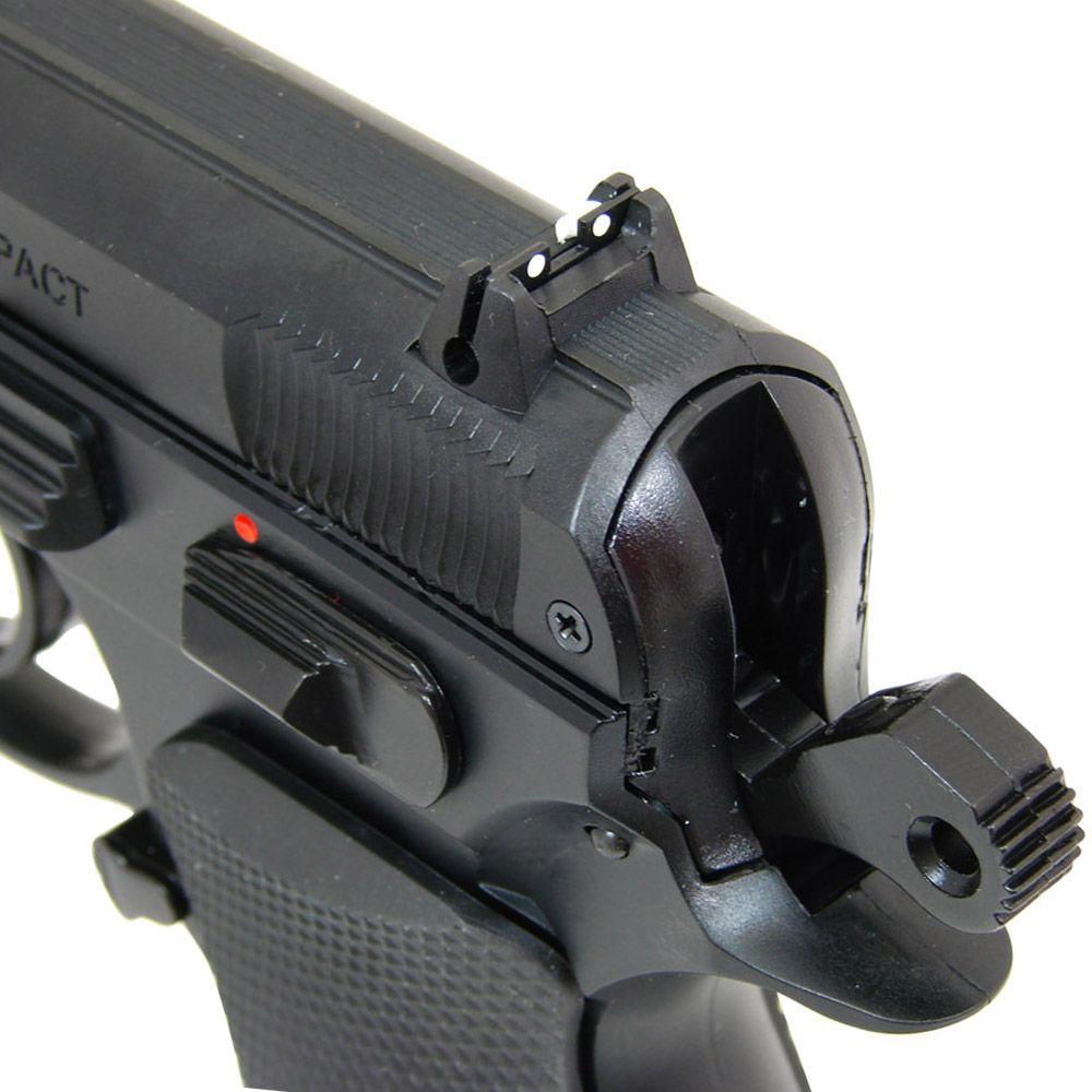 Realism: The ASG CZ 75D Compact is very accurate replica of the real steel version, with fully licensed CZ trademarks and even the 9x19 caliber markings in the slide ejection port area. The magazine is full metal and full size and does not have any telltale CO2 tab sticking out or elongated area hiding it. Again the metal slide would have finished it off.