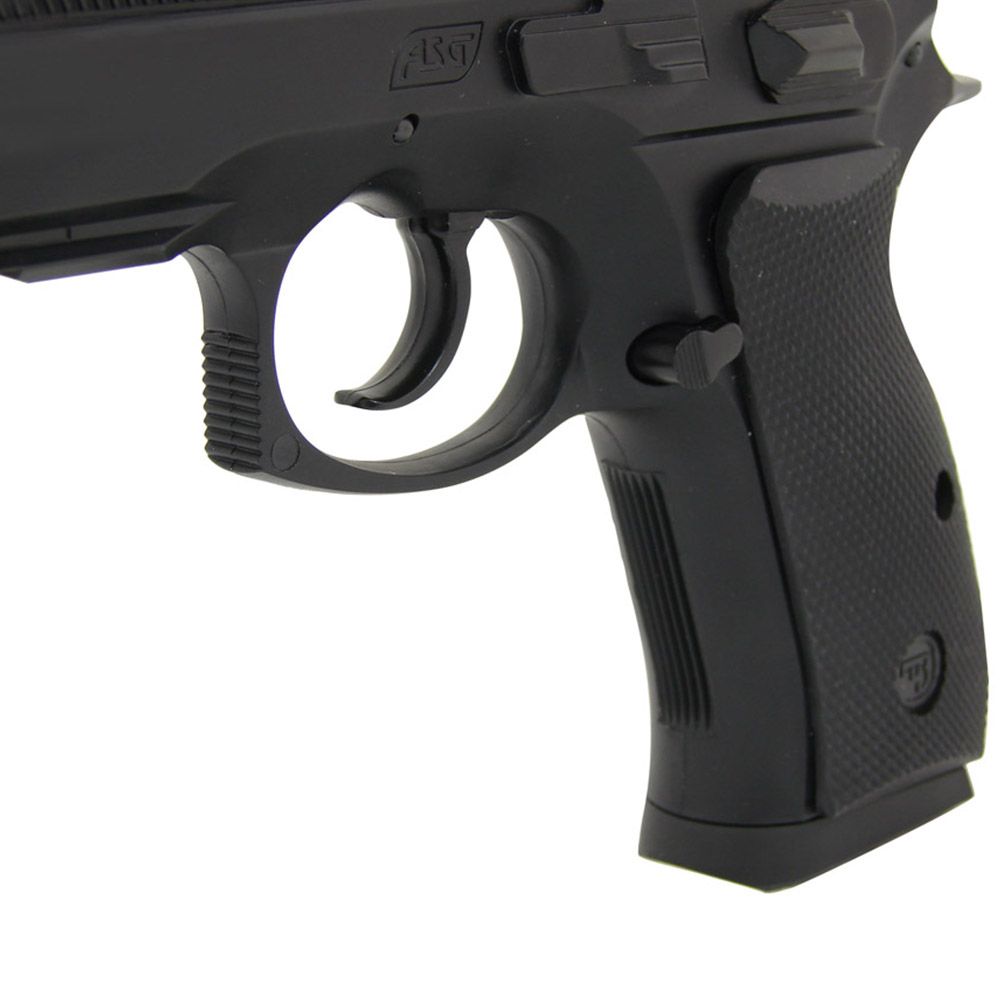 Build Quality: ASG usually distributes high quality guns, and this is no exception. The fit and finish is as nice on the ASG CZ 75D Compact as any other ASG product. The slide wiggle is virtually nonexistent, one of the best I have seen thus far. I would have liked to have seen a metal slide on this one but even so the gun has decent weight and balance to it coming in at 4 pounds in a compact pistol. There is metal where it really matters like in the trigger, hammer, safety, magazine release and of course many internal parts.