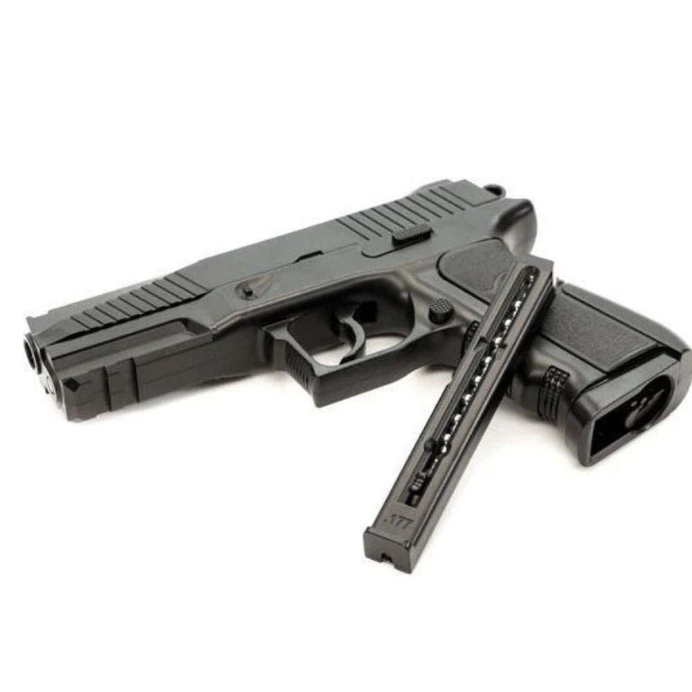 This 20 round magazine fits The 45 and The 380 BB pistols. Use only with 4.5mm (.177cal) steel BBs.