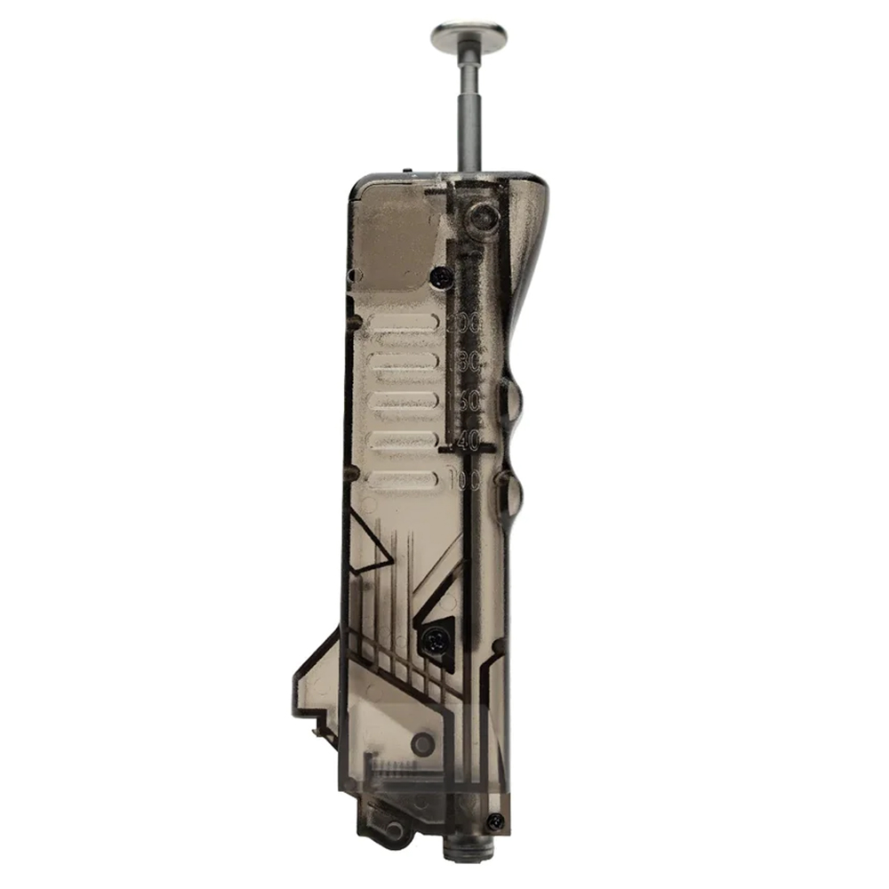 MATERIALS Lightweight plastic external housing so that you can clearly see how many BBs you have remaining. The all metal plunger or push rod makes for quick and easy loading of BBs into whatever you are loading.