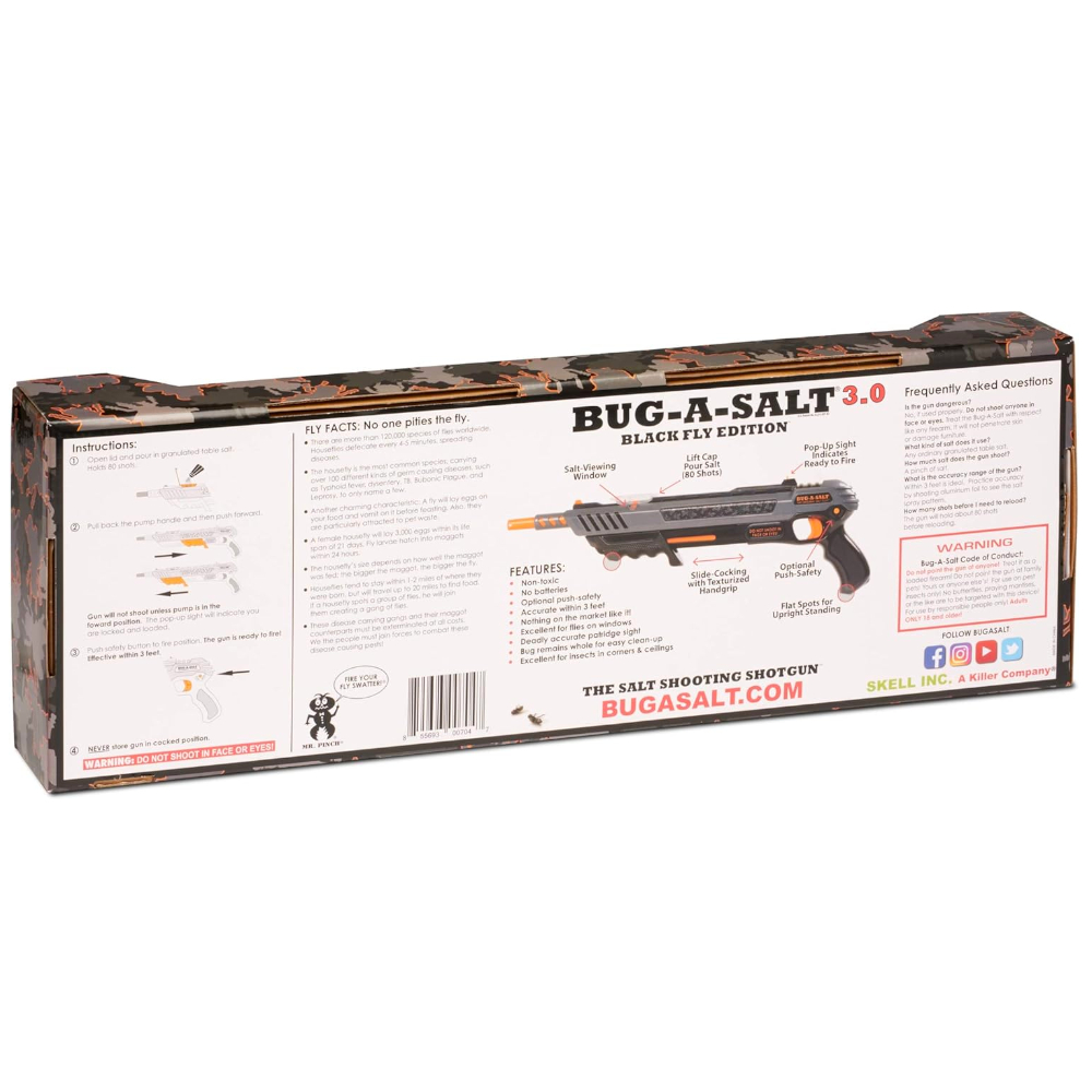 Comments: If you hate flies as much as we do and would like a more sportsman like way to eliminate them rather than your standard fly swatter that basically mushes the fly into a bloody mess on what ever surface you mash it into. Then perhaps something like the BUG-A-SALT 3.0 Salt Gun may be just perfect for you. We are hoping it works as good as the advertising says it does. Based on some of the reviews we have watched it seems ideal for flies but may not so good for larger insects with hard exoskeletons. You are going to pay a lot more for the BUG-A-SALT 3.0 Salt Gun than a dollar store fly swatter will cost you, but we can guarantee you will have a lot more fun using it and no need for the messy bug juice clean up after a kill shot.