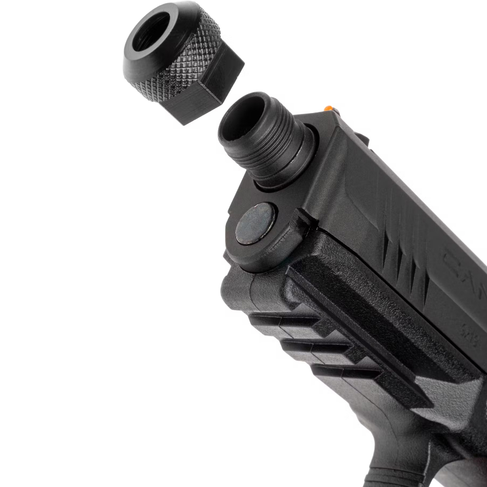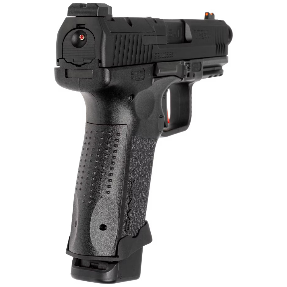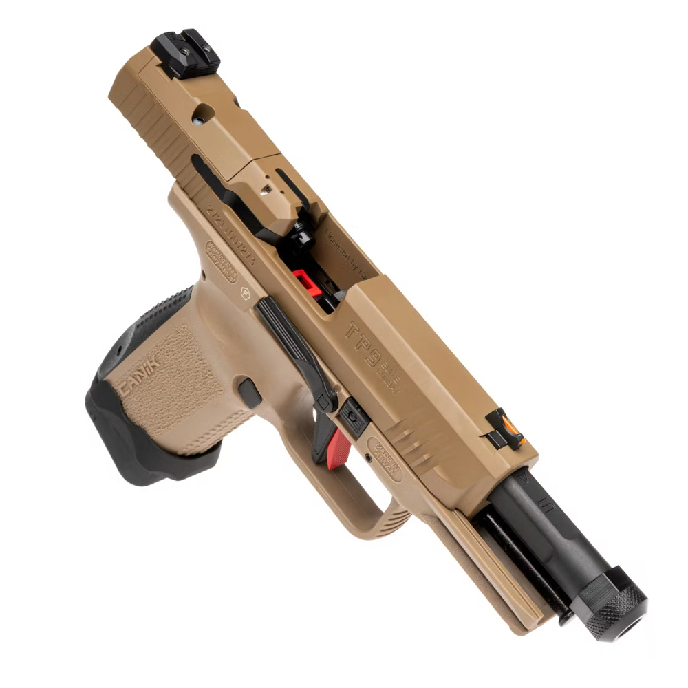 The widely anticipated collaboration project from Cybergun and Canik is nearly here! The TP9 Elite Combat is a versatile compact pistol with performance parts designed in collaboration with Salient Arms International, including a fluted and nitride-coated match-grade barrel, thread protector, sight set, and mag well. The compact pistol has a polymer frame, is striker-fired, and has an optics-ready slide to accept the market™s most popular reflex sights. Slide stop levers on both side allow for ambidextrous use. This Airsoft equivalent mimics the design feels as sturdy as the real life counterpart, with a CNC styled SAI outer barrel, optic ready slide and CNC machined magwell and sights.