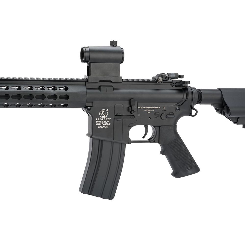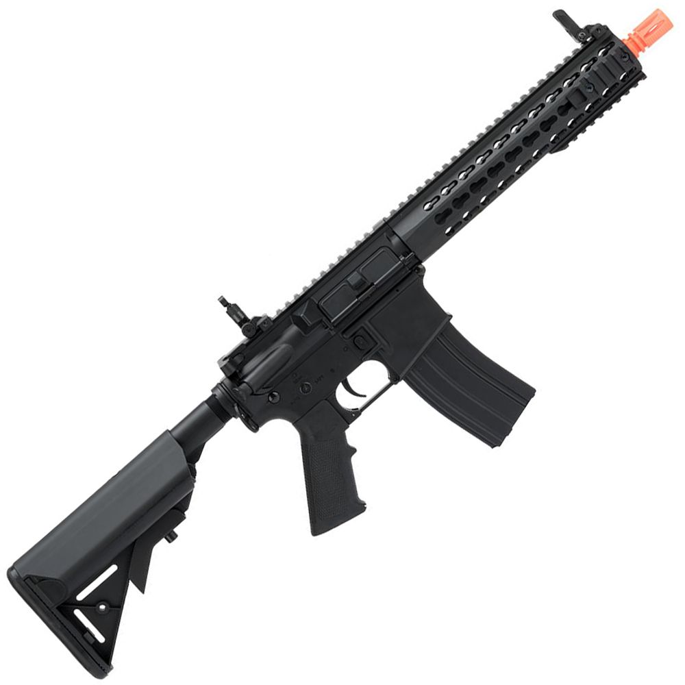 Comments: This Colt M4A1 gives you room for as many grip, light, laser and optic attachments as you want, exactly where you want them. The 10-inch keymod rail allows for total rifle customization without adding excess weight or slowing you down in the CQB arena. The monolithic upper rail comes stock with flip-up iron sights and plenty of space for additional sights and scopes. This is one AEG that can adapt to any arena and any style of gameplay. Package includes a battery, charger, and two hi-cap magazines.