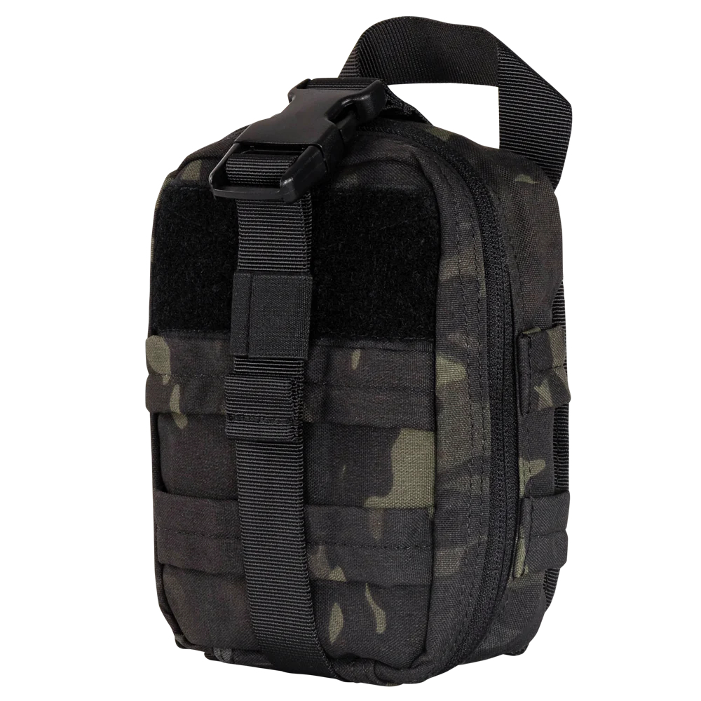 The Condor MultiCam Black EMT Lite is the redesigned personal version of the MA41 Rip Away EMT. Its compact design is great to hold a complete first aid kit for a single person, while the outside webbing can hold additional MOLLE Attachments or chem-lights. It features a grab handle for quick tear-away transfers or load-out switching, as well as a quick access pull tongue to open the pouch.