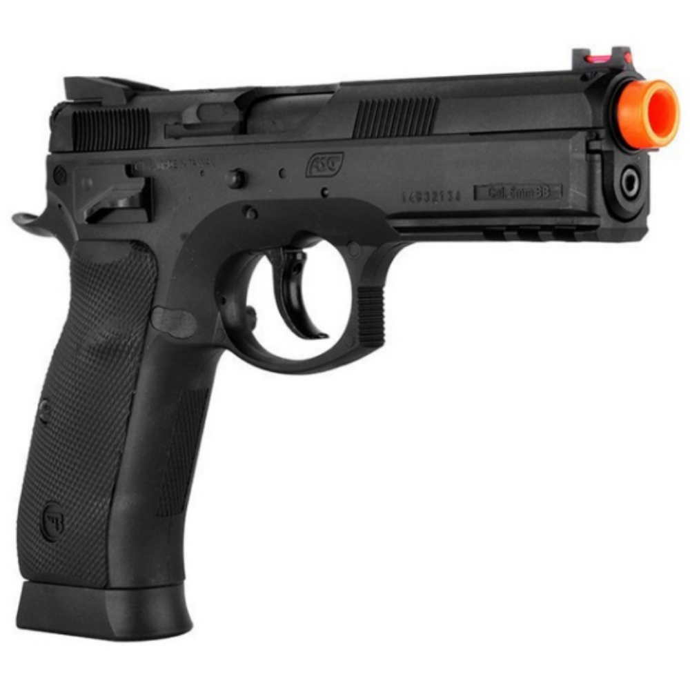 Comments: The CZ SP-01 Shadow CO2 Pistol is a favorite amongst law enforcement and military professionals. This CO2-powered replica features the same design and “Novak-style” rear sight for ultimate realism. The airsoft gun also features a fiber-optic front sight, ambidextrous grip, and 14-round magazine. Materials include metal and ABS plastic. A spring-powered version of this pistol is also available.
