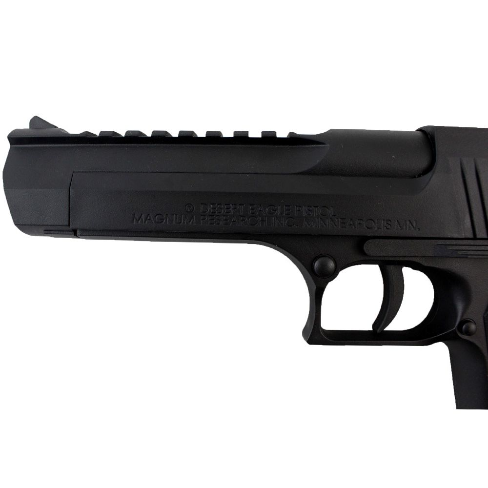 Realism: This is a very close replica to the real actual Magnum Research Desert Eagle with licensed trademarks and most everything in all the right places. However, other than the safety lever, many of the mechanical aspects of the gun are either non-functioning or serve an alternative purpose. The slide release actually opens the loading bay by making the barrel slide forward. The disassembly lever is non-functioning and is molded into the plastic along with the magazine release button.