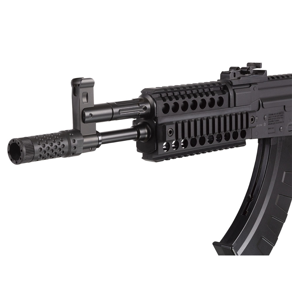 Realism: The Crosman AK1 CO2 Blowback Full Auto BB Rifle for sure looks the part of an AK but in a more modernized version with its fold out AR compatible adjustable rear stock and quad rail setup. Even the pistol grip can be swapped out for an AK type pistol grip. Most of the mechanical parts work as expected as in the selector lever, charging handle, magazine release and even the rear adjustable and removable sight. the only slight letdown is perhaps not being able to easily field strip the Crosman AK1 CO2 Blowback Full Auto BB Rifle similar to the real steel version so no the top dust cover does not pop off allowing access to the internals.