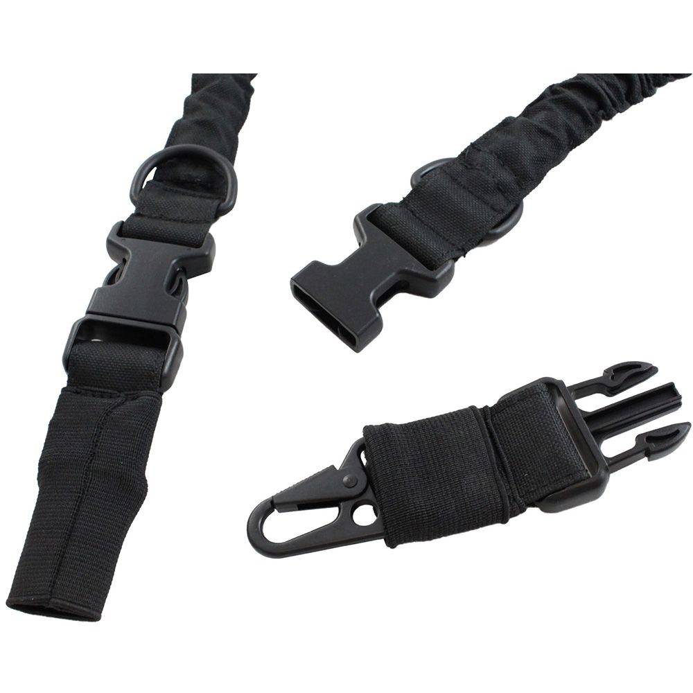 Comments: Keep your rifle at the ready with this Gear Stock tactical bungee sling. The 1.25" nylon webbing is backed up with an inner bungee cords to absorb shock during meanuvers. It's easy to setup and remove your rifle with the HK snap hook and multiple quick-release buckle.