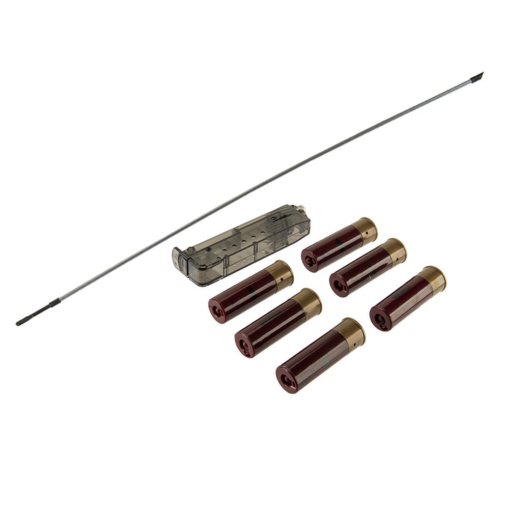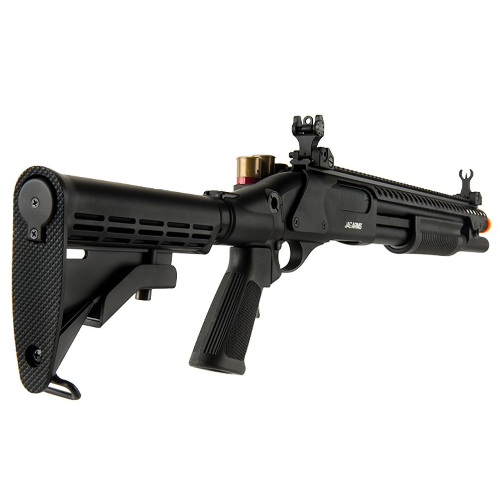 Comments: Blast away your foes with the JAG Arms Scattergun! This SP version uses an M4-style adapter with a collapsible stock for a customized fit. Features include a full metal receiver, a full-length Picatinny top optic rail, and selectable 3-shot or 6-shot burst firing. Powered by green gas, the Scattergun SP is easier to pump compared to spring-powered shotguns.