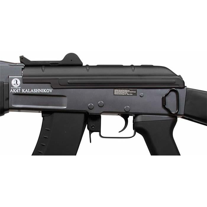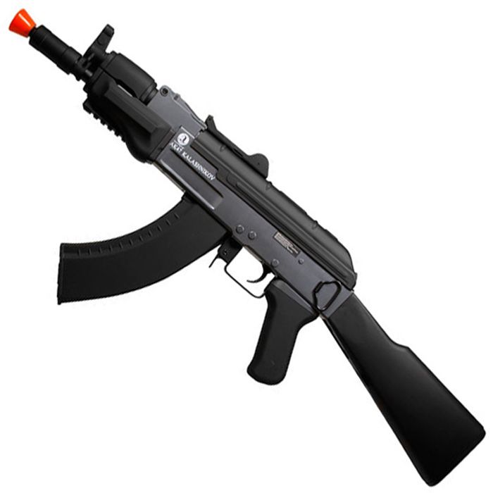 Comments: The Kalashnikov AK47 Spetsnaz is a powerful and accurate assault rifle with a metal gearbox and receiver. The compact barrel provides agile maneuverability in close-quarters combat. A weaver/picatinny rail is located on the underside of the gun for additional accessories or to use as a stabilizing grip.