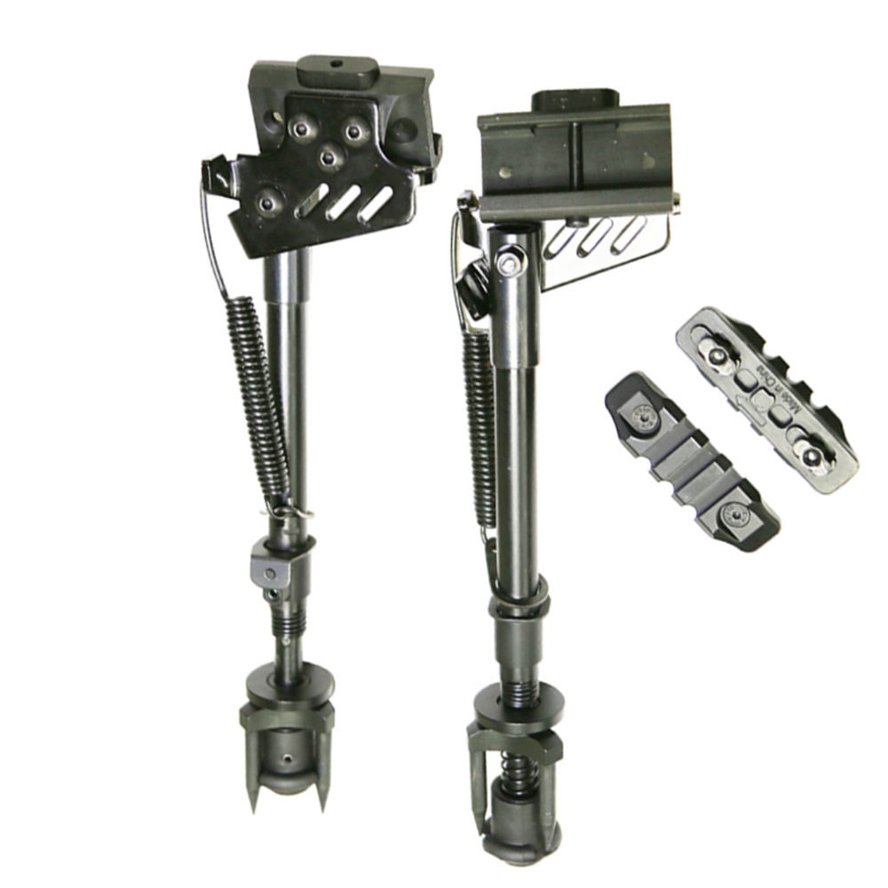 The VISM Side KPM bipod has two separate bipod legs that can be mounted to either side of a handguard. The KPM Mounting System (KPM) is a modular mounting system that includes all the hardware and tools for mounting the KPM Bipod to KeyMod™ slots, Picatinny rails, and M-LOK® slots. The bipod legs can be mounted directly to side Picatinny rails on either side of a handguard. There are two included Picatinny rail sections that can be mounted to KeyMod™ or M-LOK® slots of a handguard. The side bipod legs can then be mounted to the Picatinny accessory rails. Spring loaded notched bipod legs allow you to quickly deploy the bipod legs at many different lengths. Bipod legs adjust to lengths from 8.5 to 11.0 inches. Spring loaded steel talons can be deployed onto loose soil and vegetation for more traction. Push the base of the steel talon to deploy the three steel pins for traction and press the button to retract the talons.