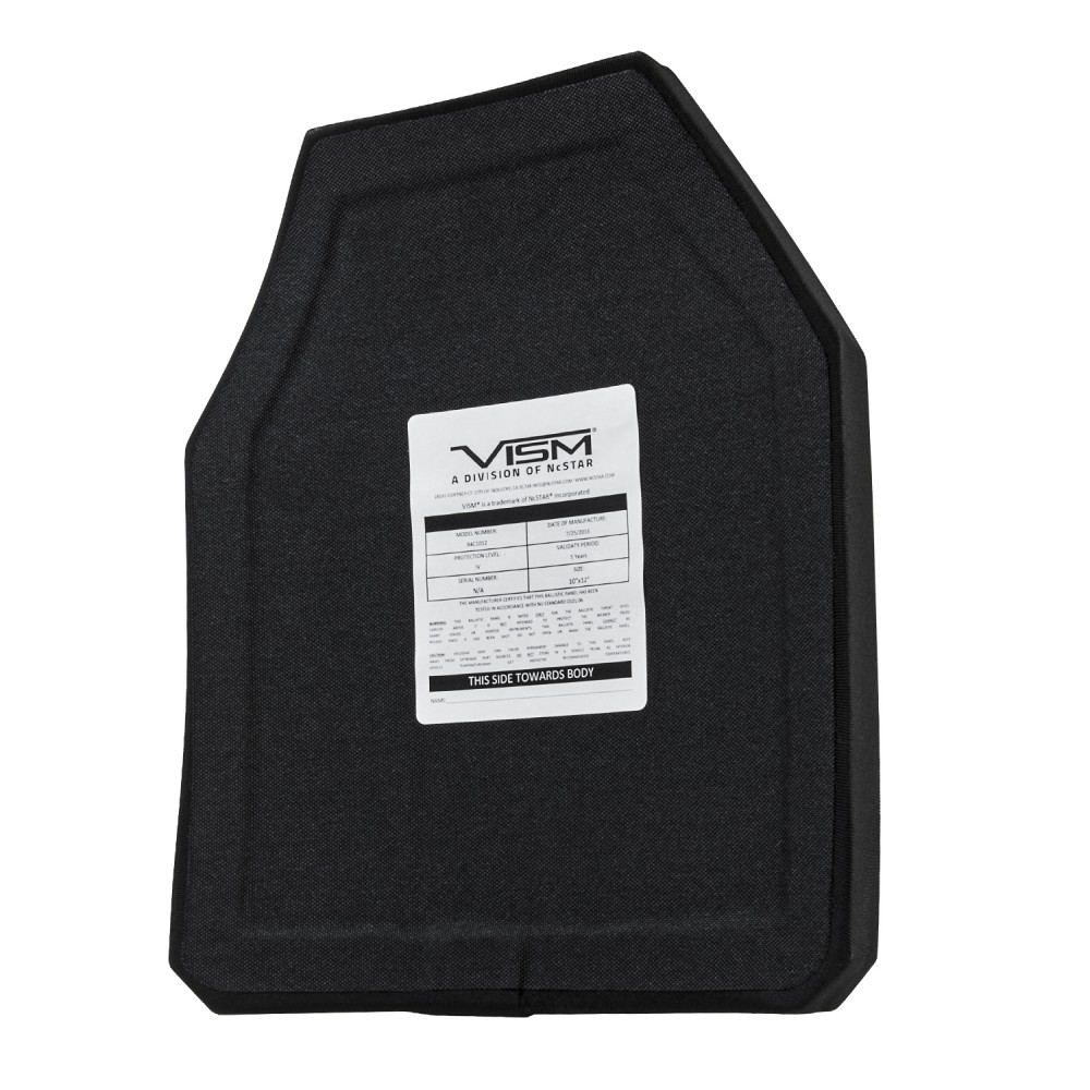 Ballistic plate is constructed of a Ceramic/UHMWPE composite resulting in a lighter plate. Material structure allows for a greater crack resistance over other ceramic plate designs. Rated at level IV- capable of stopping .30 caliber AP and M2 rounds with a bullet weight of 166 grains. The curved design fits the user with greater comfort, and the cut upper corners allow for better mobility.