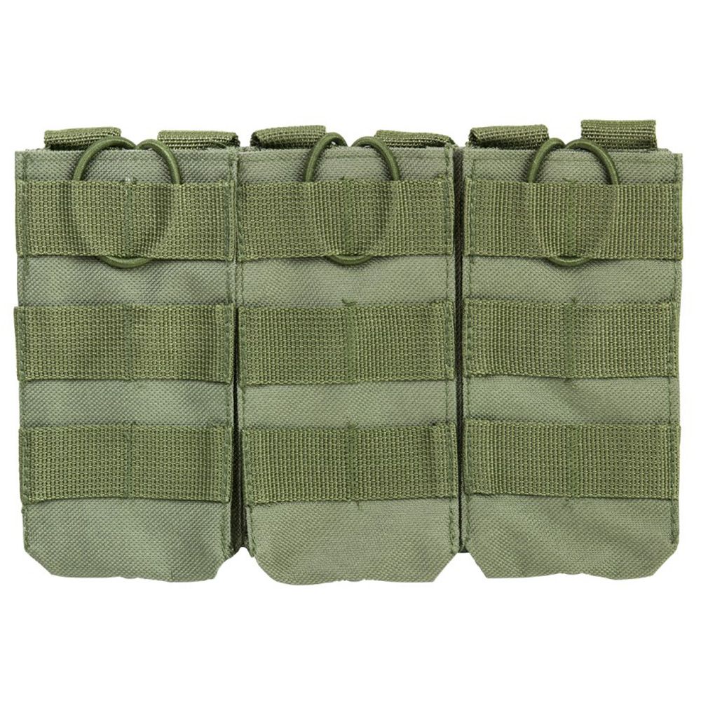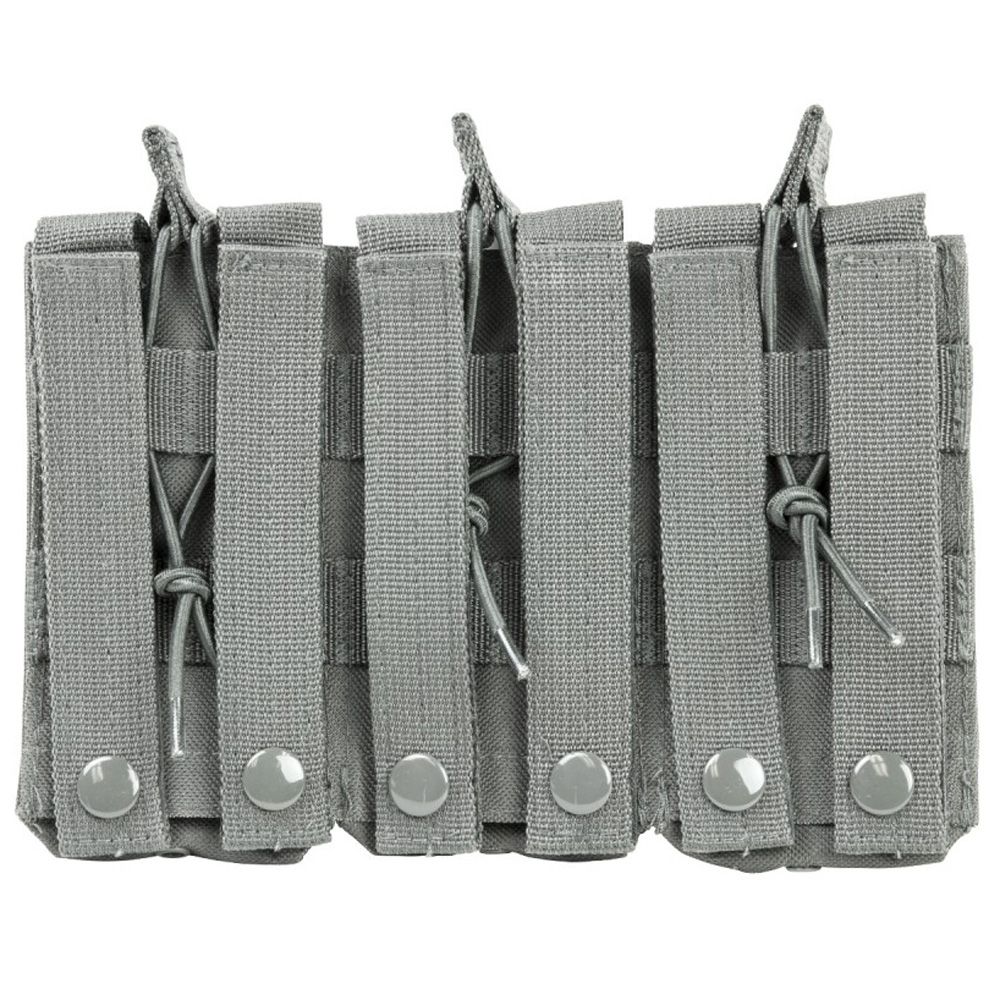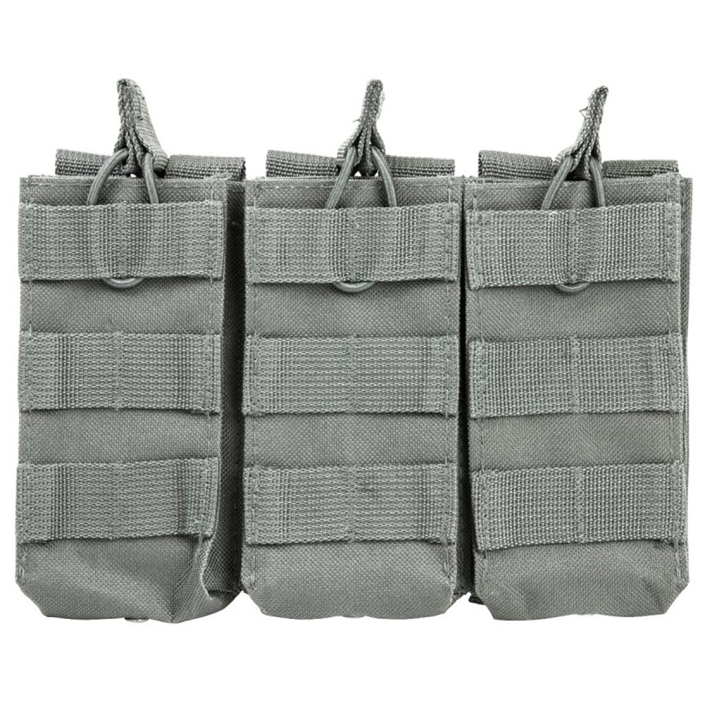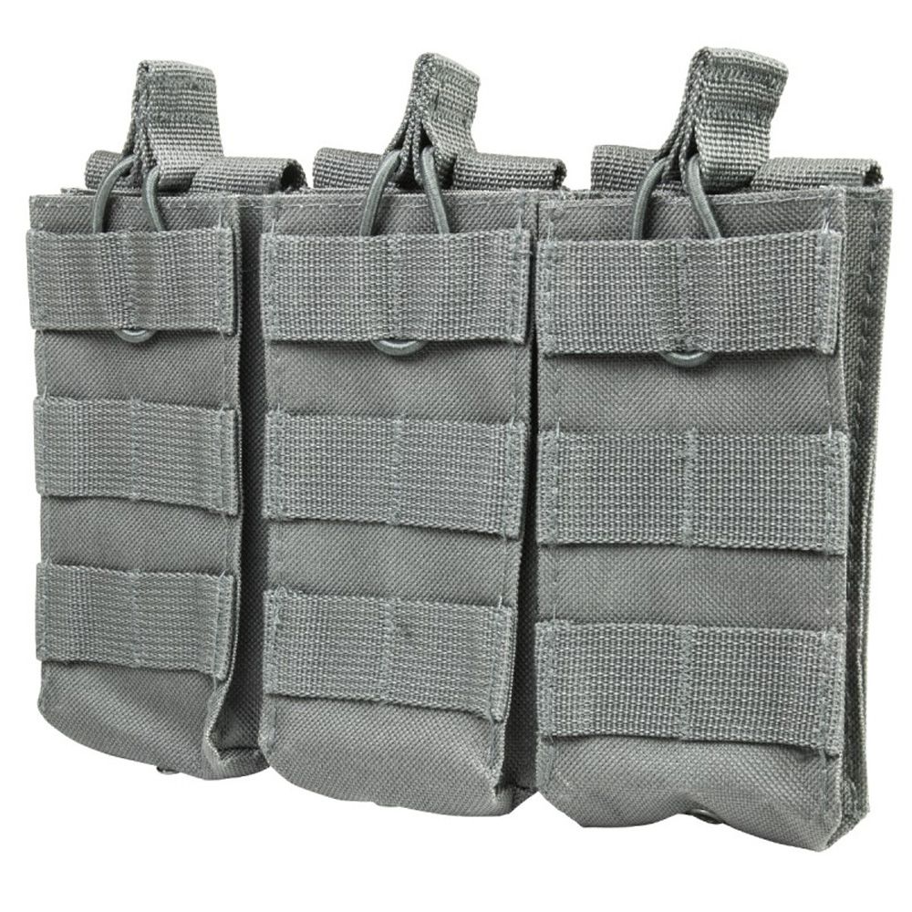 The NcStar Vism AR Triple Mag Pouch is constructed with heavy duty PVC material. It holds 3 AR style 5.56/223 or 7.62 x 39 magazines. The adjustable bungee style retentions straps make access to your magazines easy while securely holding them in place.