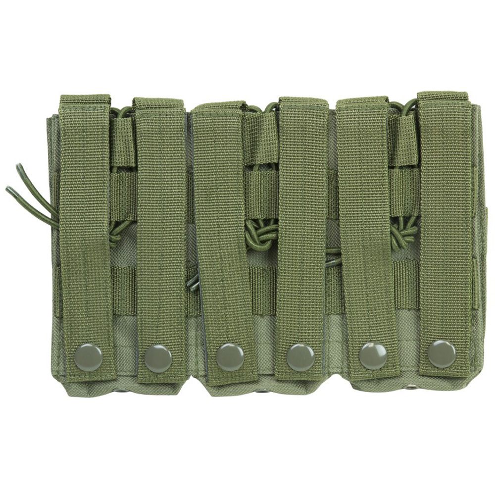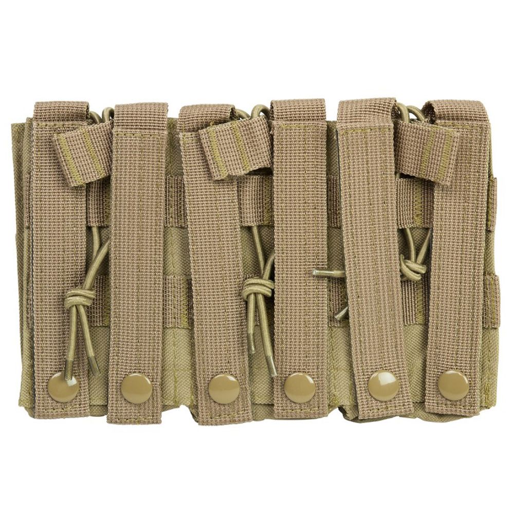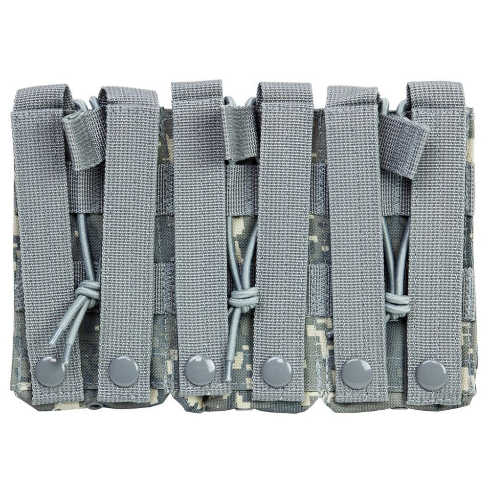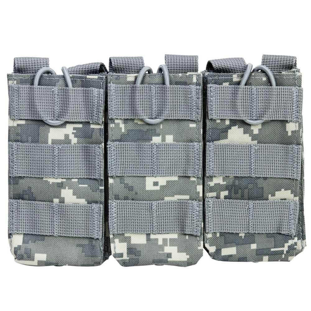 The NcStar Vism AR Triple Mag Pouch is constructed with heavy duty PVC material. It holds 3 AR style 5.56/223 or 7.62 x 39 magazines. The adjustable bungee style retentions straps make access to your magazines easy while securely holding them in place.