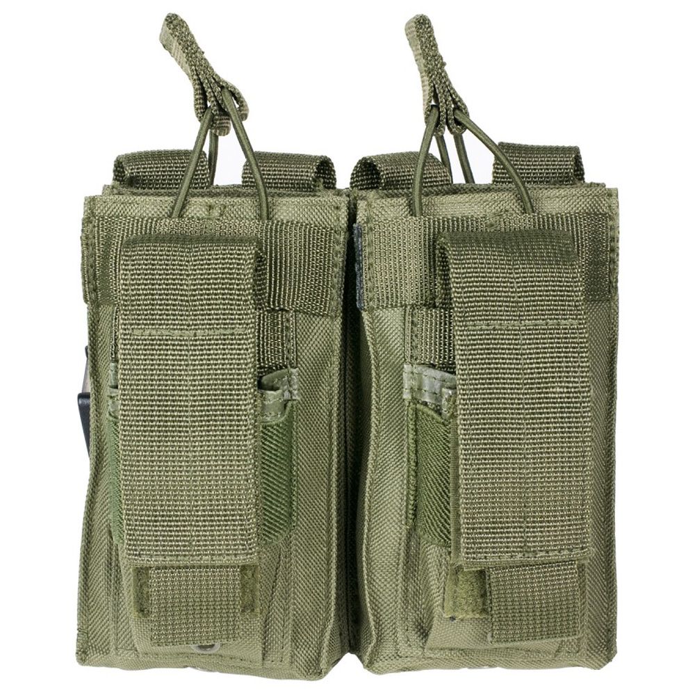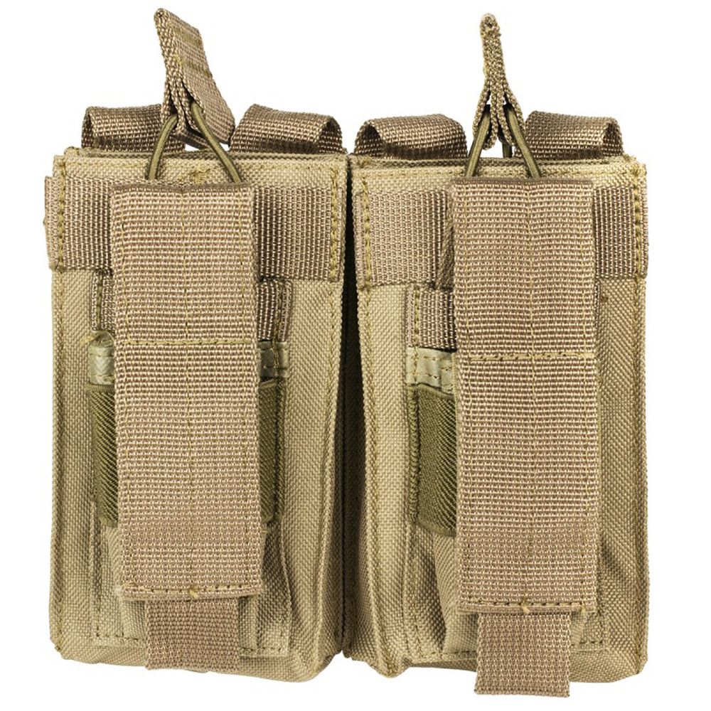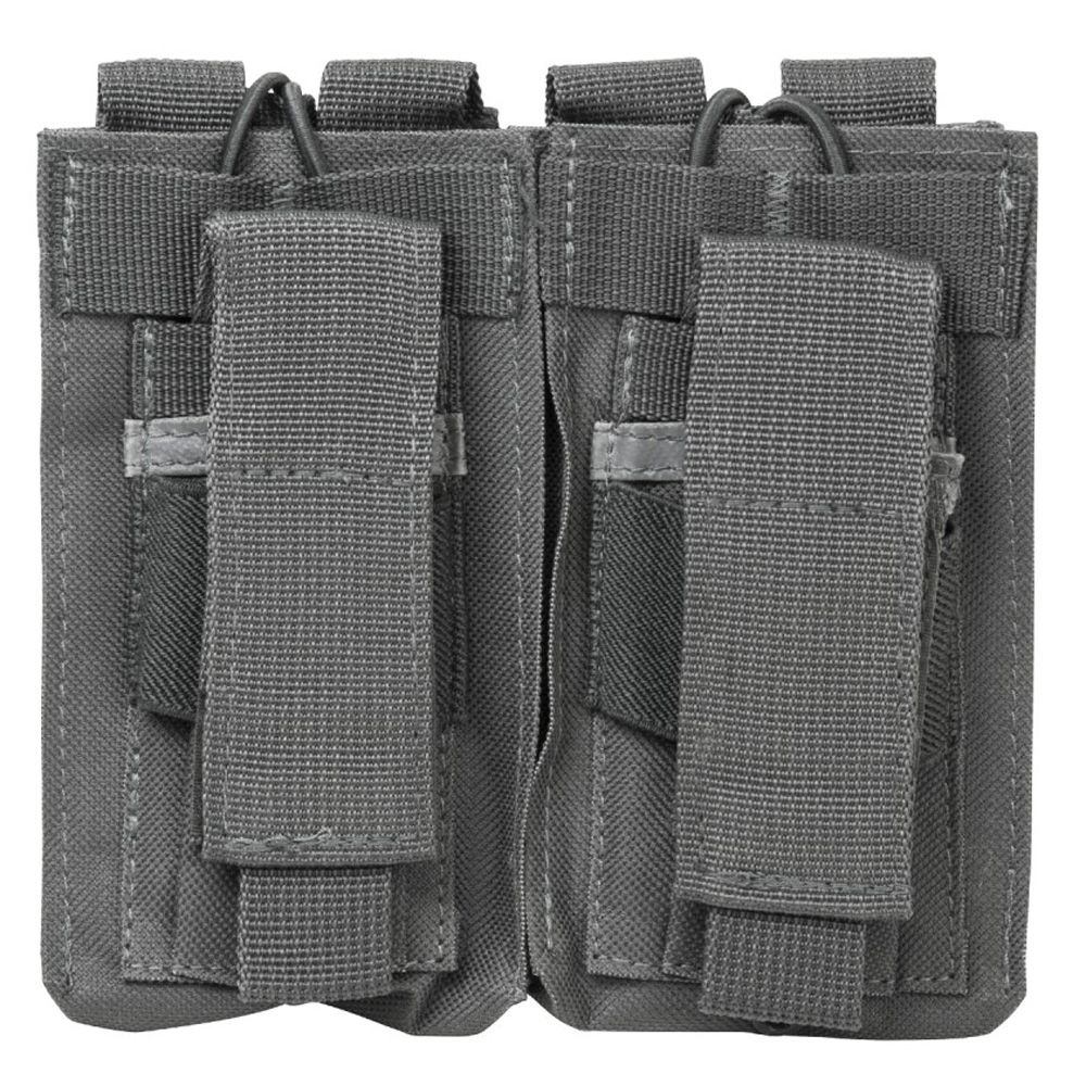 The Ncstar Vism Double Mag Pouch holds 2 AR style 5.56/223 or 7.62 x 39 magazines. It has two double stack pistol mag pouches so you can carry extra mags for your sidearm.