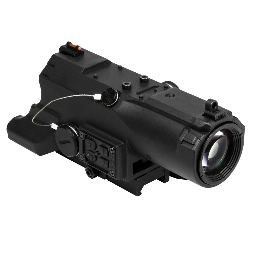 Comments: Bring your target four times closer with the NcStar ECO MOD2 4x34 Aluminum Scope. This 4x34 scope comes with a wide range of features, including an adjustable green laser, red and white LED navigation light pod, an integrated Micro Dot reflex dot sight base, and top mounted backup iron rear peep sight and a fiber optic front sight post. The electronic control panel makes it easy to adjust the illumination levels and lights.