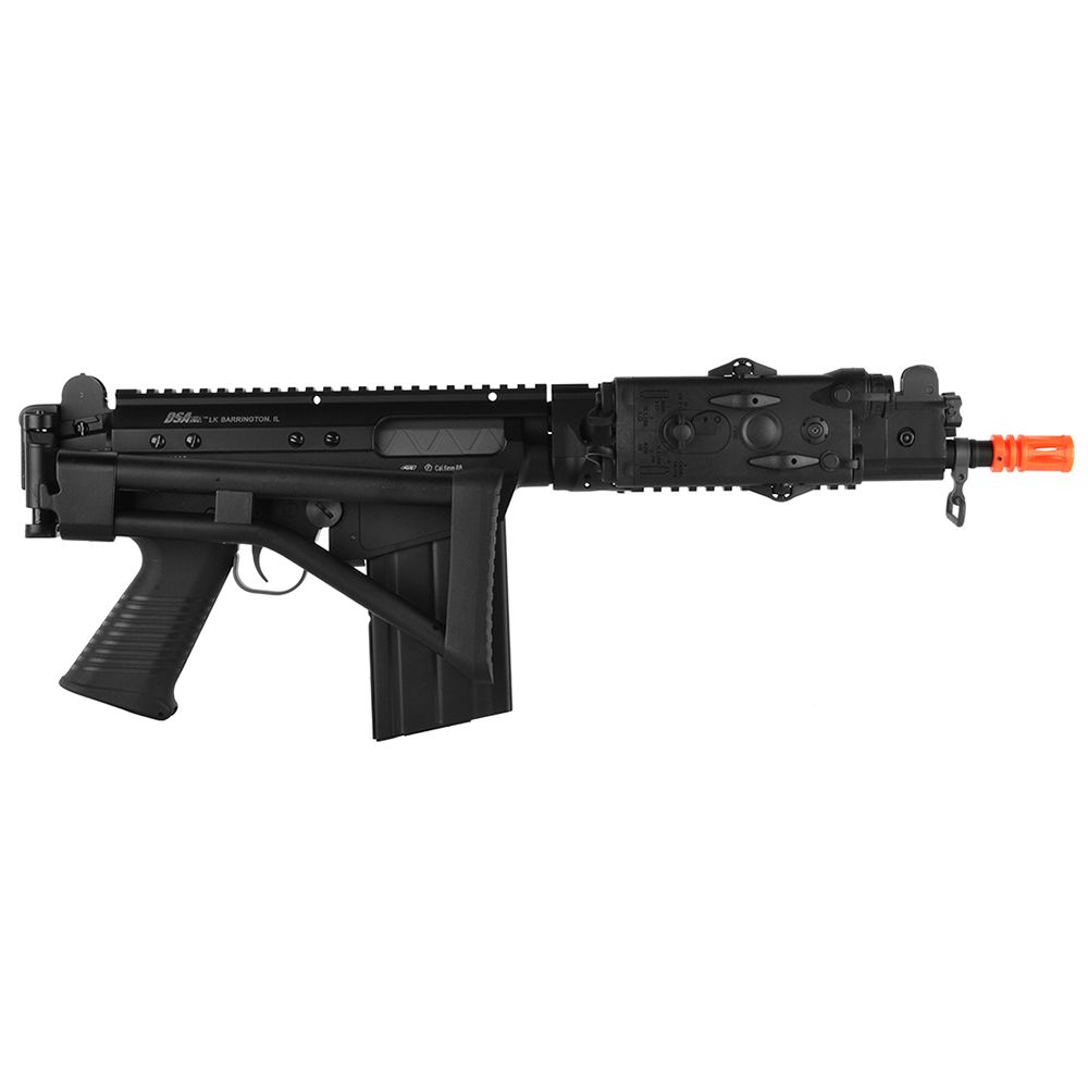 Comments: ASG is a licensed manufacturer of DS Arms replica airsoft guns, an internationally recognized expert in small arms. The Proline DSA SA-58 OSW Airsoft Rifle illustrates why the DS name has achieved its legendary status. The OSW model boasts a folding skeleton, ambidextrous mag release and a full metal construction. ASG added some of its own flare to the replica as well, including a 6.03mm tightbore inner barrel, high capacity mag and easily accessible hop-up unit. This all adds up to an accurate and devastating airsoft gun. For maximum damage, we recommend 0.20g BBs or heavier. Batteries and chargers not included.