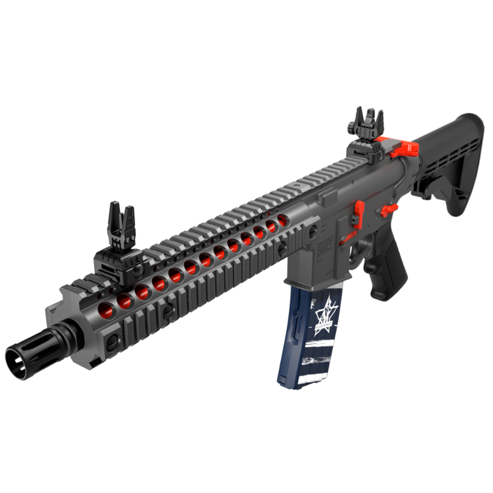 The Crosman R1 Fallen Patriots Blowback CO2 Full Auto BB Rifle is similar to the Standard Version Crosman R1 but with cosmetic color scheme changes that enhance its appearance. It's the best-looking Crosman AR Series Full Auto BB Gun so far. The iron sights give it a classic AR look, but a red dot sight can easily be added for those who prefer it.