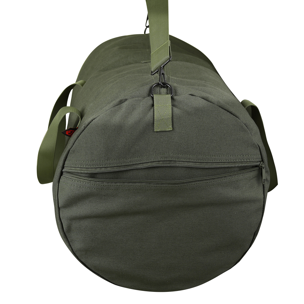 This Raven X shoudler bag features a heavyweight cotton canvas construction with thick web carry handles, so it can take a beating without breaking. With one zipper end pocket and a large main compartment, this no-nonsense duffle makes a great day bag. The adjustable/removable shoulder strap make extended carry comfortable and easy.