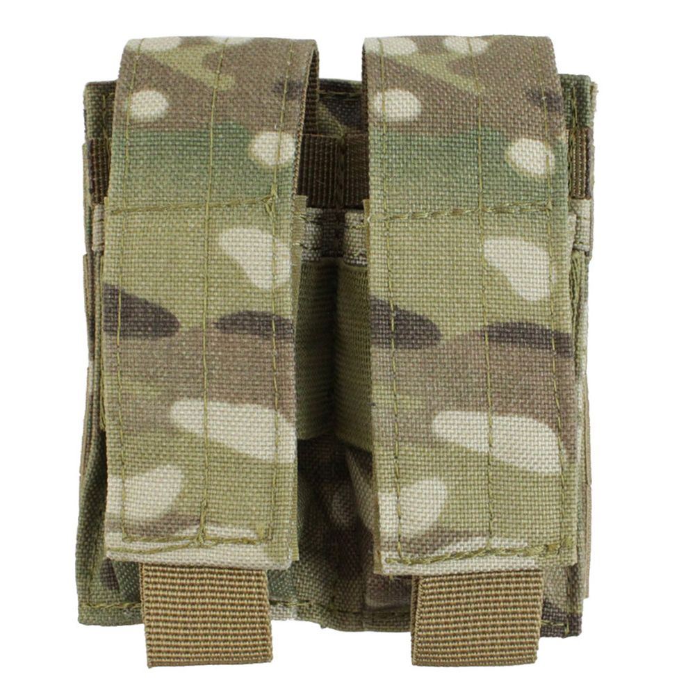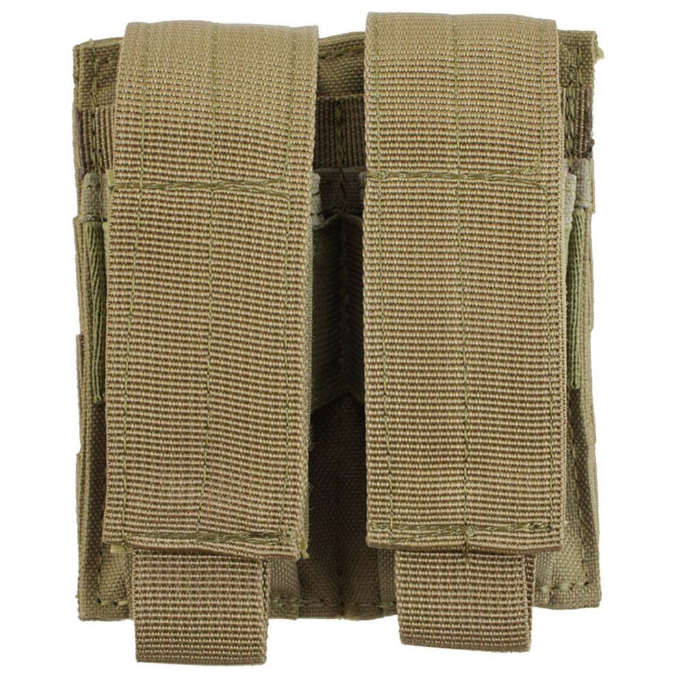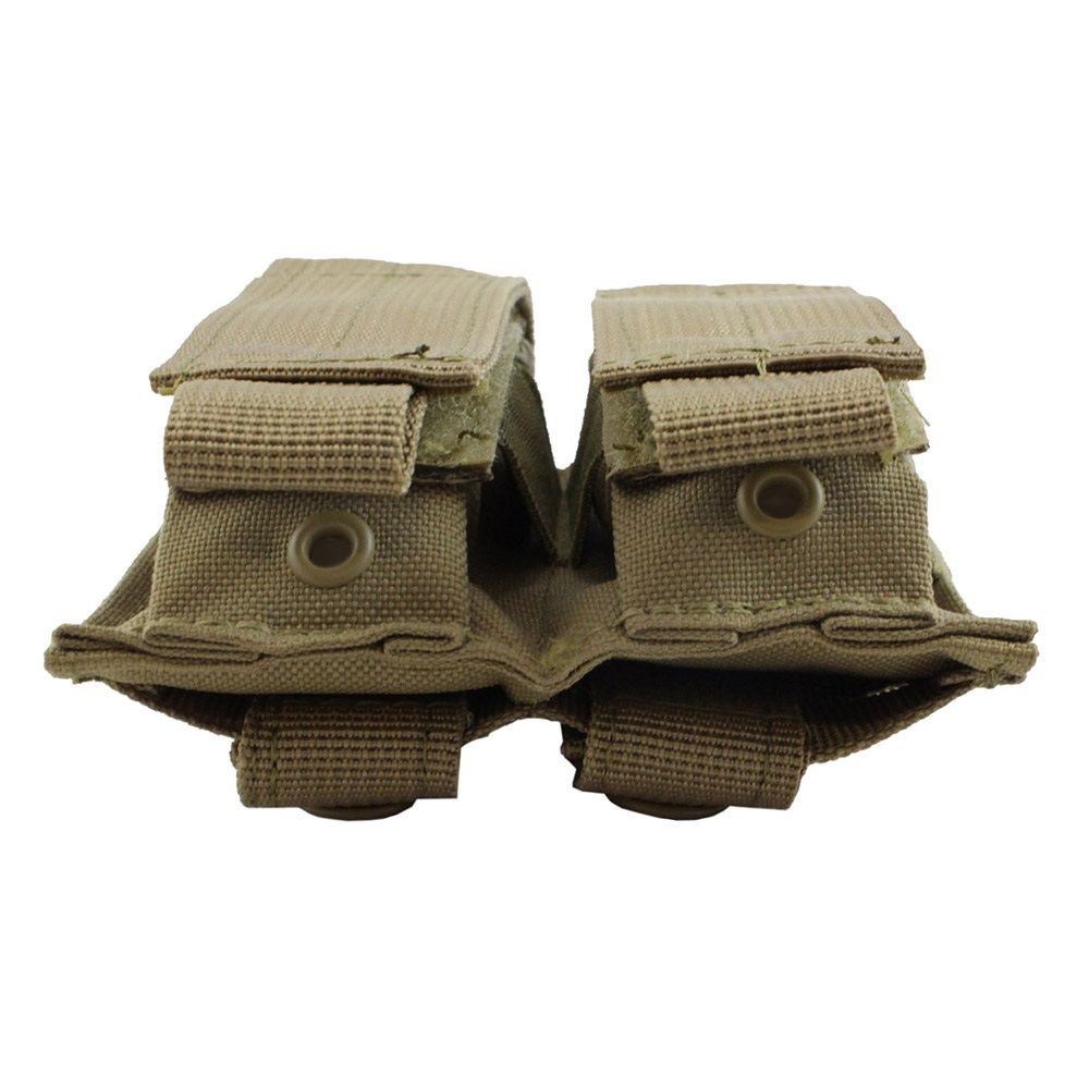 Comments: Keep your pistol magazines at the ready with the Raven X Dual Pistol Magazine Pouch. With adjustable pull tab covers, this pouch can fit pistol magazines of virtually any size or model. Constructed from thick nylon canvas with drainage grommets and PALS backstrap for easy attachment to MOLLE gear.