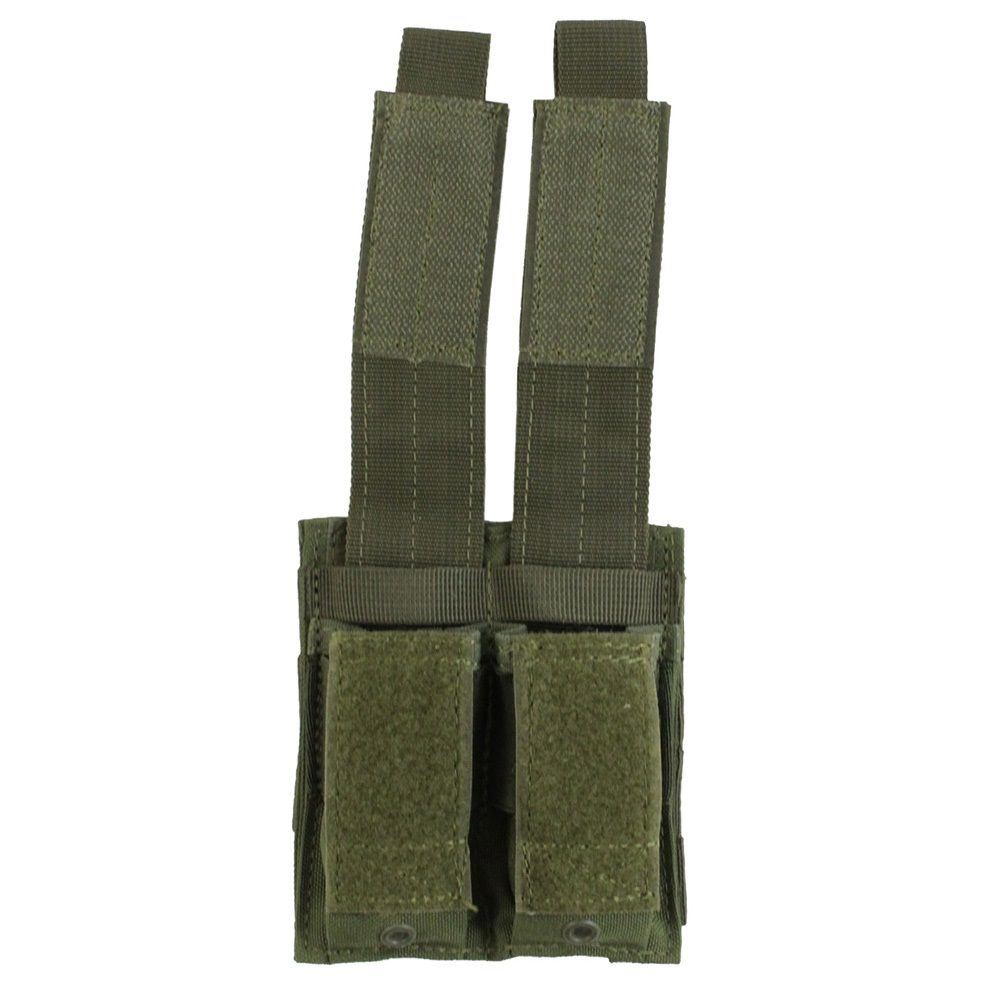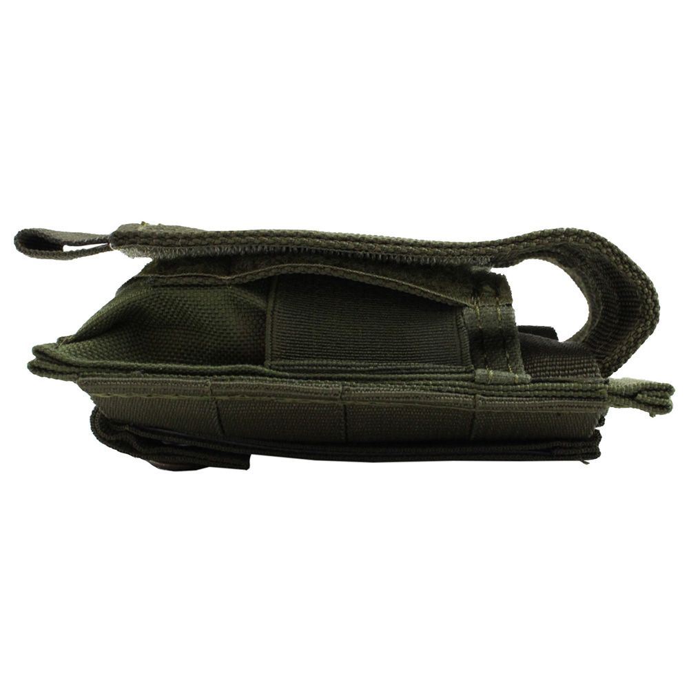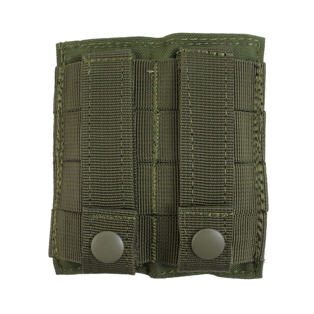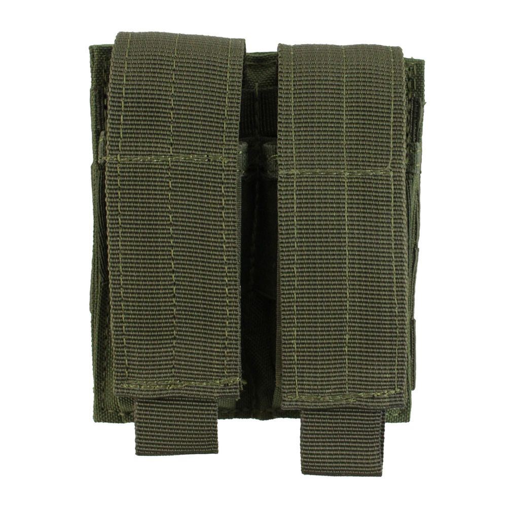 Comments: Keep your pistol magazines at the ready with the Raven X Dual Pistol Magazine Pouch. With adjustable pull tab covers, this pouch can fit pistol magazines of virtually any size or model. Constructed from thick nylon canvas with drainage grommets and PALS backstrap for easy attachment to MOLLE gear.