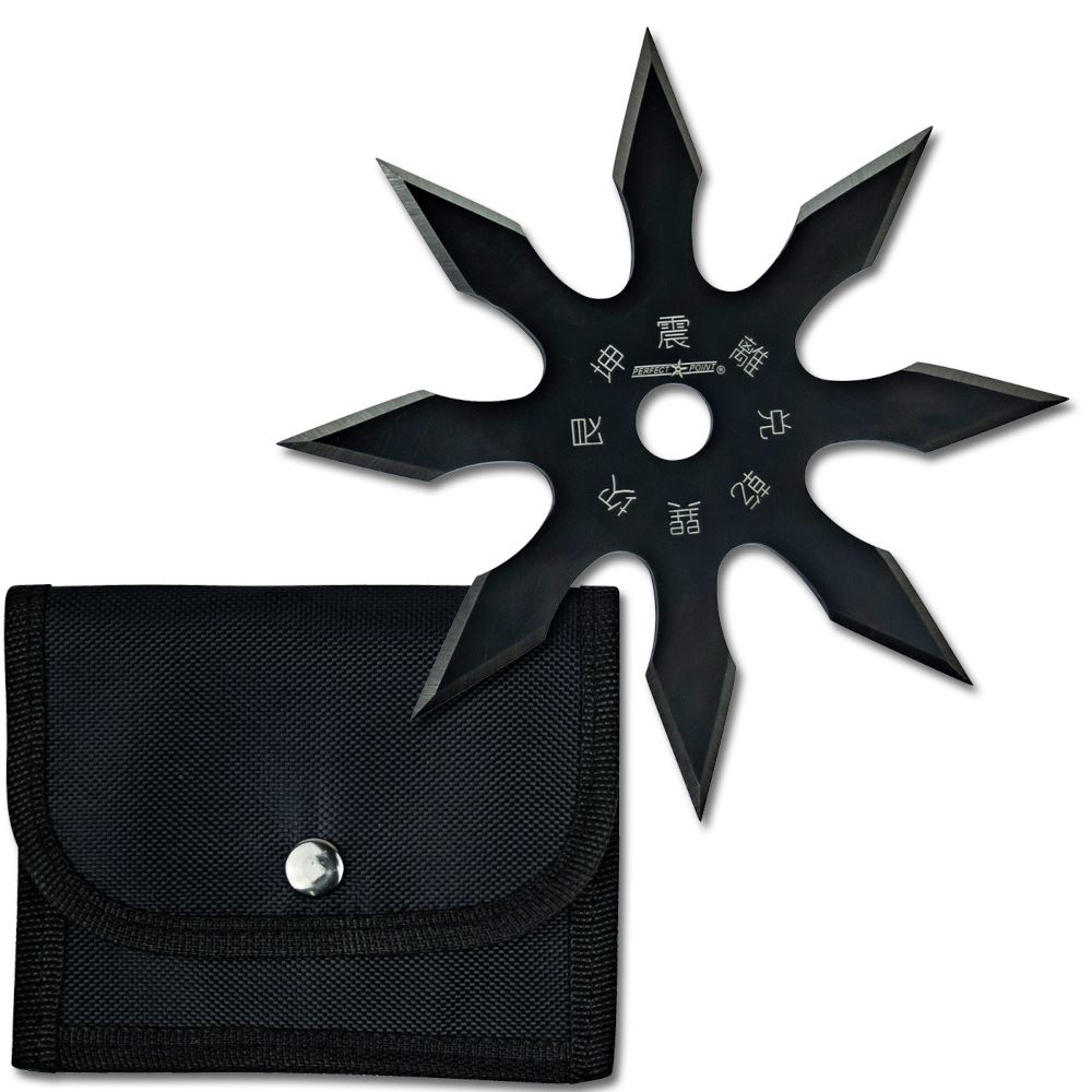 Introducing the 4-inch Throwing Star Blade, a compact and lethal tool for enthusiasts and practitioners of the martial arts. This throwing star boasts a 4" diameter and is crafted from stainless steel for durability and balance. It features a black 8-point design, making it a formidable weapon. The star comes with a nylon sheath for safe storage and transport.