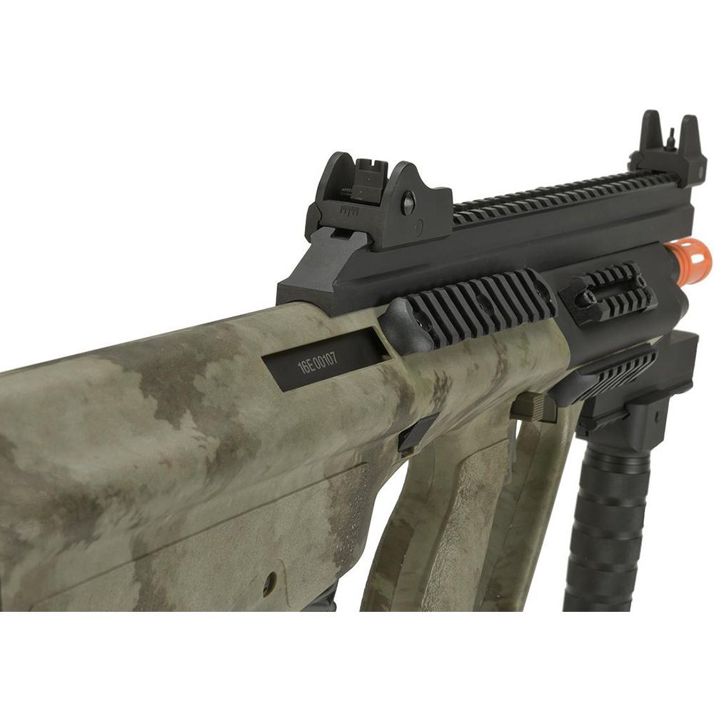 Comments: The STEYR AUG A3 XS Commando Airsoft is a fierce electric rifle engineered for battle at close quarters. The bullpup design moves the core of the rifle’s action behind the trigger, making the gun compact and easy to maneuver while keeping the barrel length long for improved accuracy and velocity. The well-rounded weapon features a V3 metal gearbox, adjustable hop-up system, and removable iron sights.