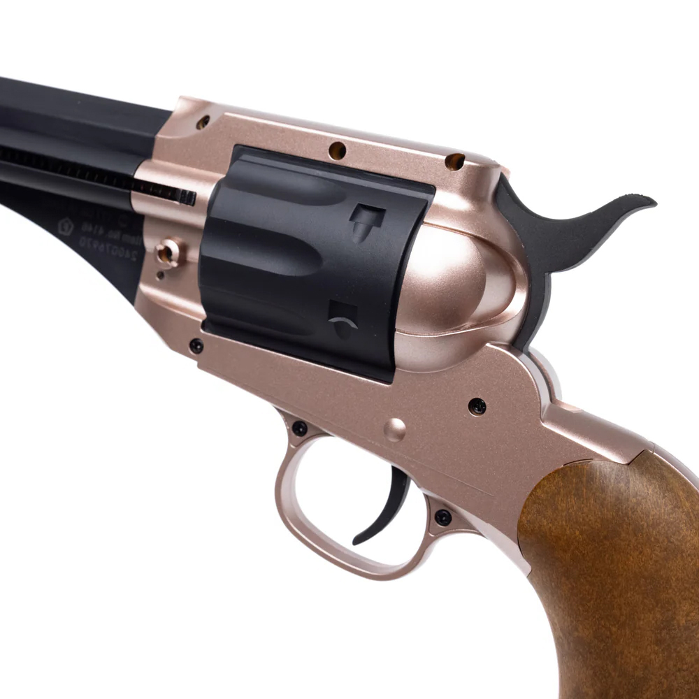 Realism: The Barra Cowboy Series 1858 CO2 BB Revolver at a glance looks a lot like a Remington 1858 Single Action Revolver, it has the same shape and size but the weight is way less being mostly plastic. The lack of actual bullet holes in the cylinder looking at it from the front of the revolver also takes away from the realism. I guess I am really used to the new generation revolvers with working cylinders and real loadable shells but these guns are more expensive and hold less ammo as they are genuine to the 6 shooter capacity. The barrel is however recessed which is nice.
