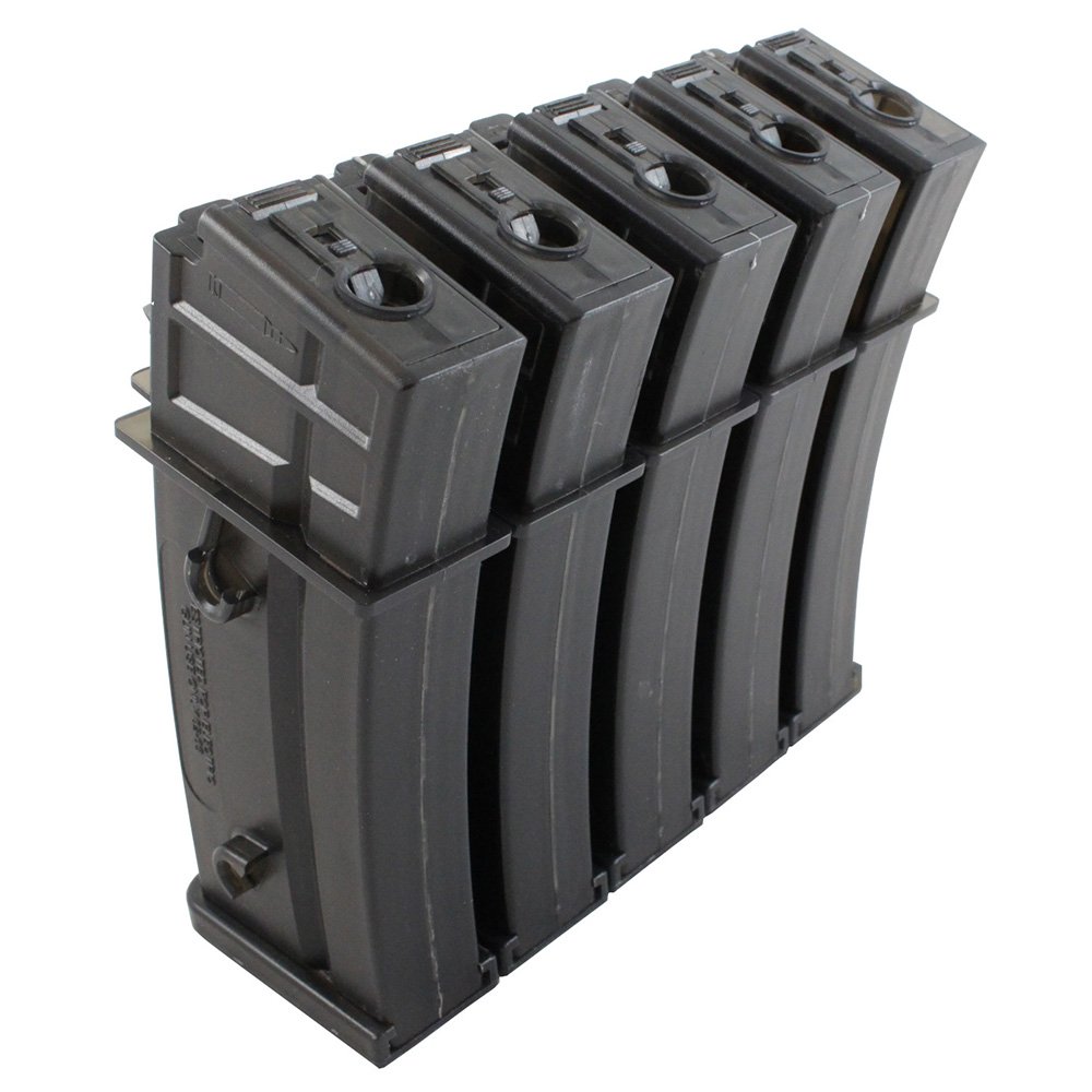Comments: This 5-pack of hi-cap airsoft magazines are compatible with most G36 style AEG airsoft rifles. Each mag holds 470 rounds, for a combined total of 2,350 rounds! The studs on the side allow the magazines to be conveniently stacked.