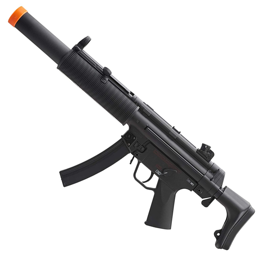 Elite Force and Heckler & Koch team up to make one sweet MP5 SD6 airsoft SBR. Included in the box is an easily installed A4 style stock that allows you to customize this MP5 to your liking as well as in installed claw type Picatinny Optics rail. Of course the retractable SD6 stock is still fully adjustable and fully collapses for ease of maneuverability. This slick AEG sends .20 gram BBs downrange at 315 FPS and works great with your 7.4-11.1 LiPo batteries (Not Included). Pick up some Elite Force Bio BBs along with this sweet officially licensed HK MP5 SD6 and hit the fields. Umarex holds the worldwide exclusive HK-Trademark and exterior design copy license for use with this product, granted by Heckler & Koch GmBH.