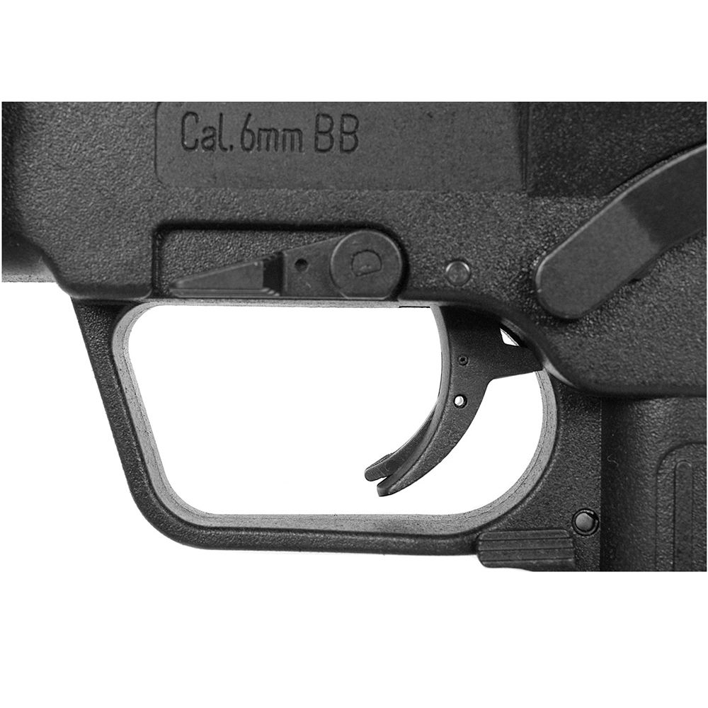 Trigger Pull: The trigger pull on the Umarex H&K MP7 is single action only as the charging handle has to be pulled back to open and release the bolt for the first shot fired. There is a trigger safety that must be engaged to fire, but it is not noticeable when shooting this airsoft PDW. There is a short take-up and then a nice light release and short reset.