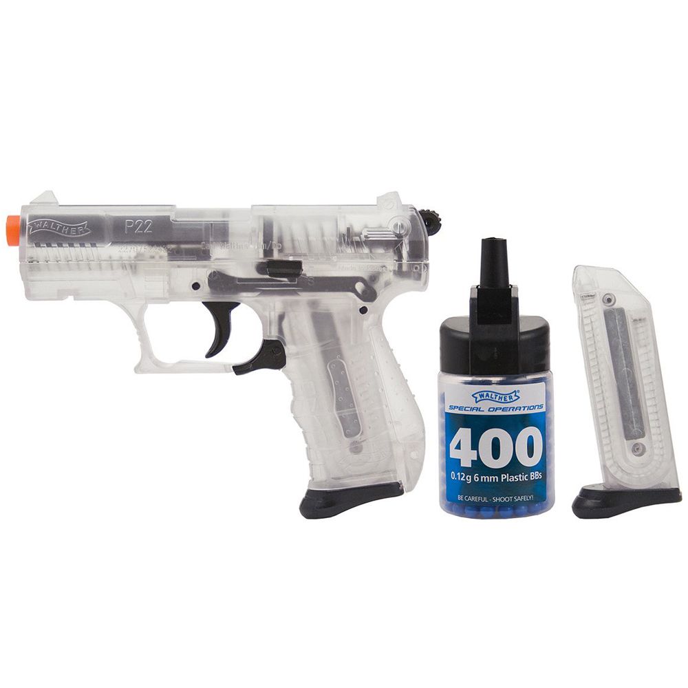 The P22 is a low-impact yet fun-packed airsoft BB gun offered by Walther Special Operations. It's a spring-operated pistol that comes with some airsoft BBs and an extra P22 magazine.