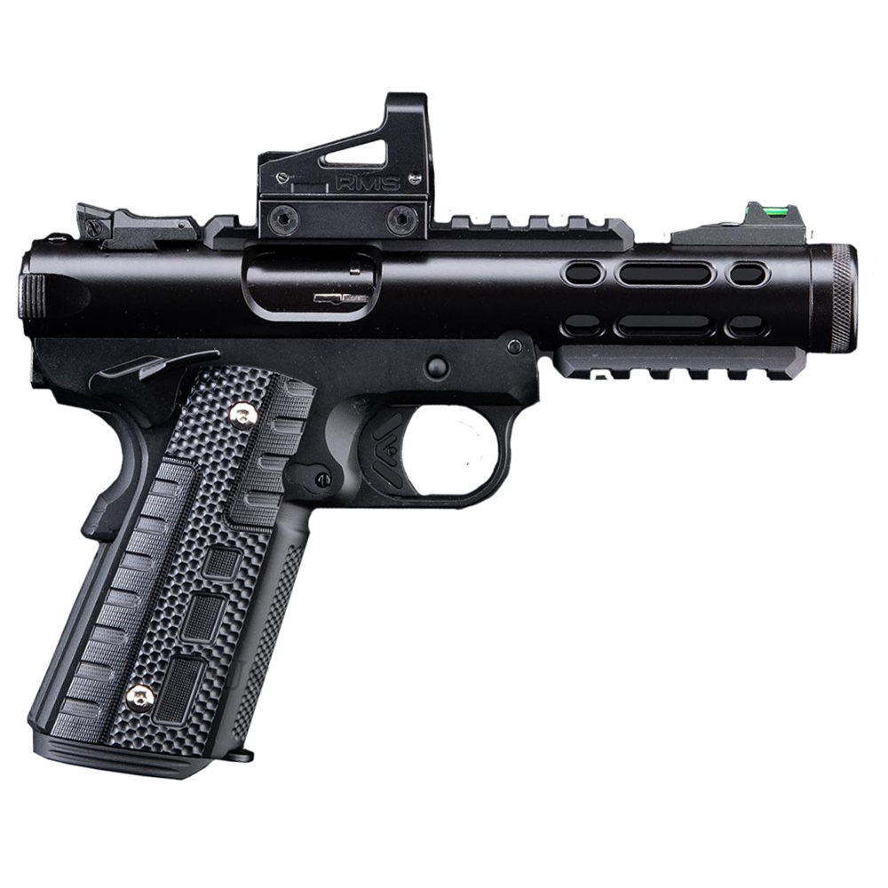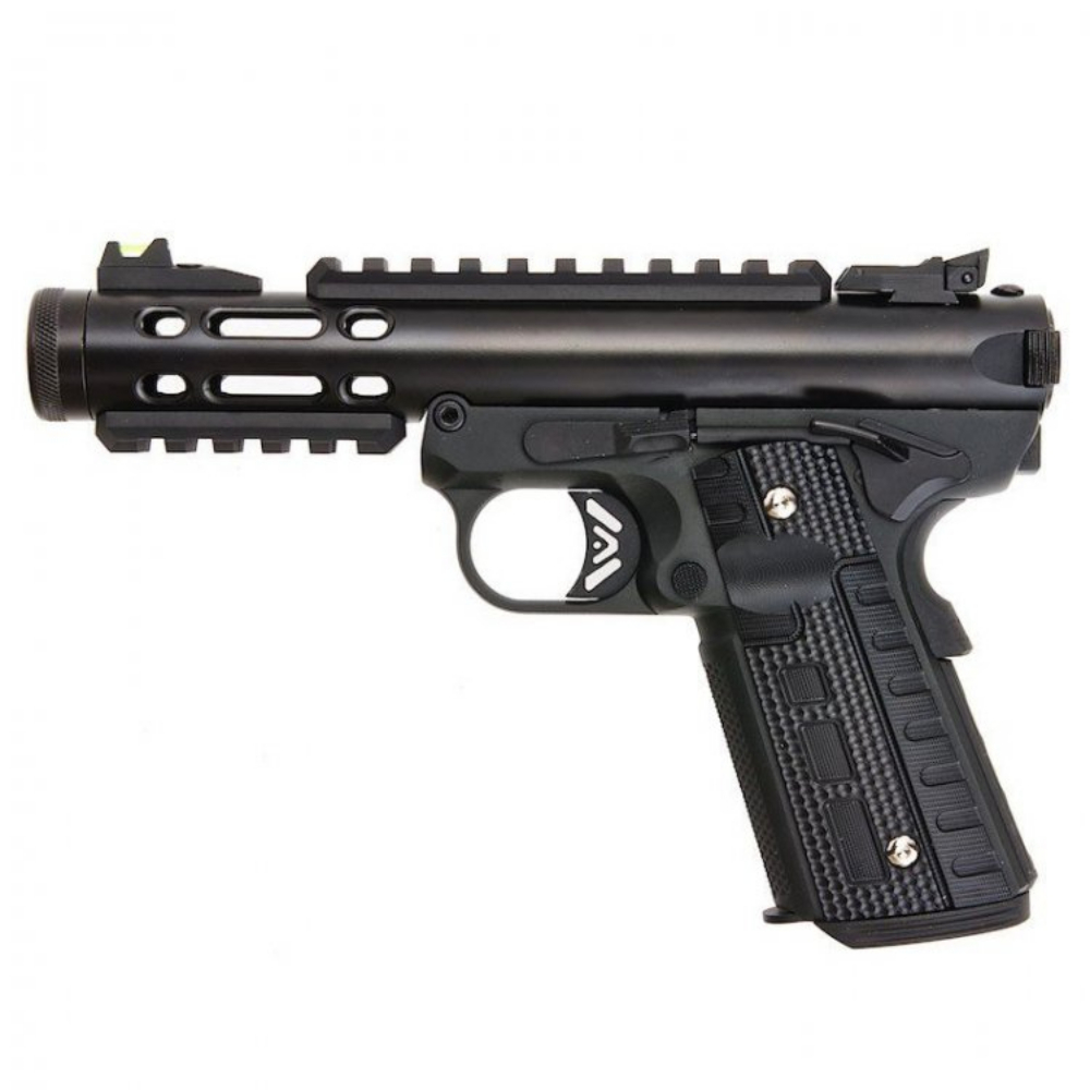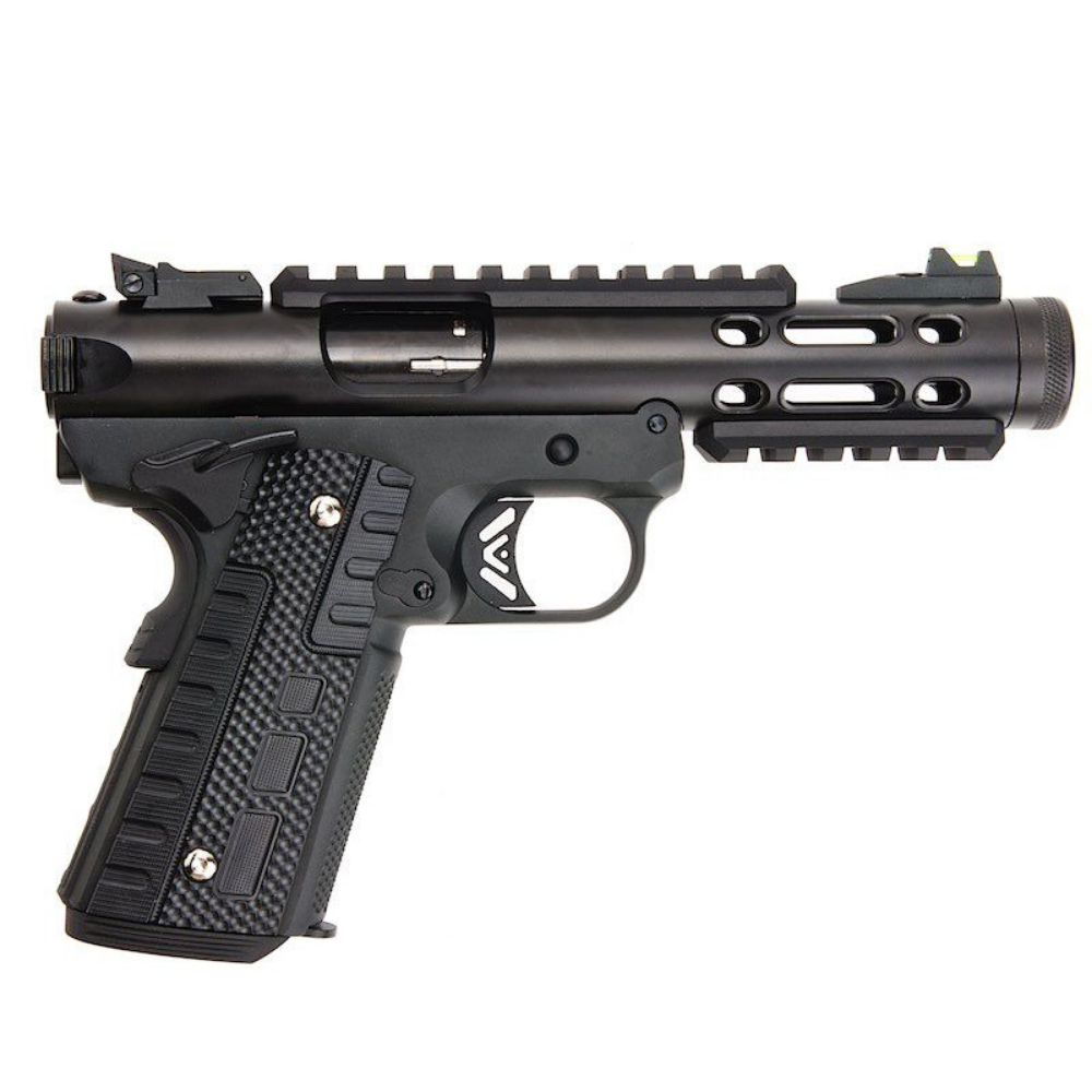 A pre-order item is an up coming new product, or an item in the process of being restocked to the Evike.com platform by it's manufacturer.By pre-ordering an item, you will have reserved the inventory availability to receive it before the goods arrive. All pre-order items are eligible for a full refund at any time during the waiting period; simply call or drop us an email with the order # and the pre-order item you would like to cancel for an immediate refund. Due to circumstances such as US customs inspection, factory delays and other situations out of our control, all ETAs (estimated time of arrival) are estimated to our best ability and are subject to change.The upper receiver portion of this pistol features an enclosed bolt inside a futuristic looking barrel assembly with a ventilated barrel shroud. With the bolt being the primary moving part in this assembly, this creates a snappy and crisp recoil feeling and fast cyclic rate when firing as opposed to other designs where the entire slide moves back and forth. The removable top and bottom M1913 Picatinny compatible rails allows one to mount nearly any accessory one could need on such a pistol. The knurled thread protector reveals standard 14mm Negative threads, allowing any barrel accessory such as muzzle boosters or tracer units