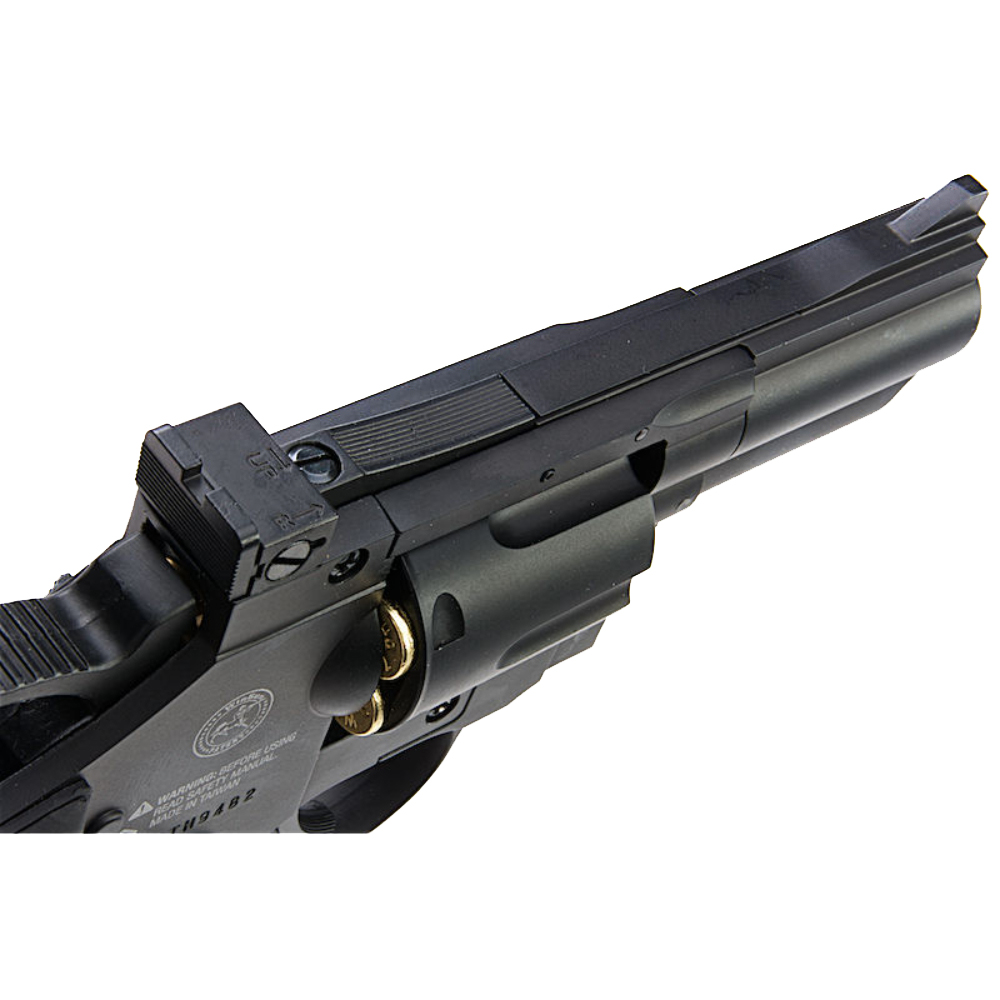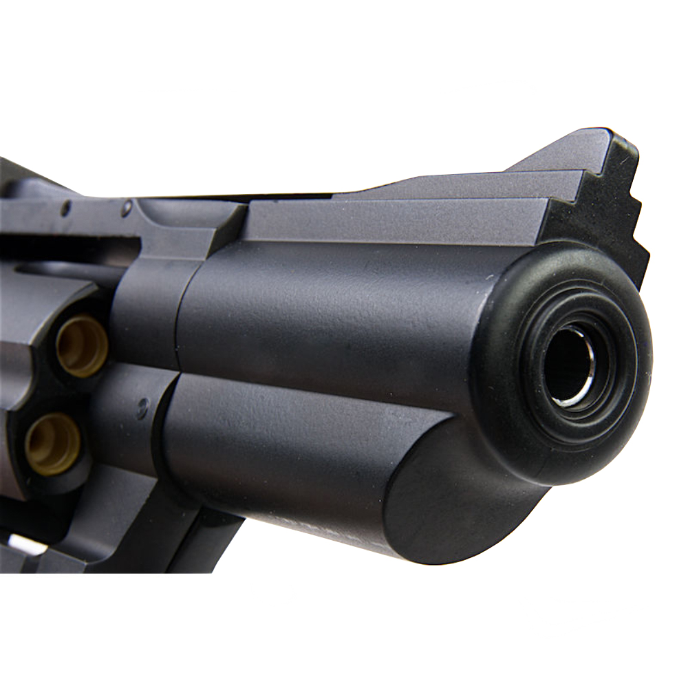 The gun faithfully replicates the full form and function of real revolvers as it even uses individual shells to house each of its six BBs it shoots.